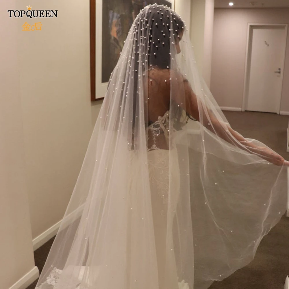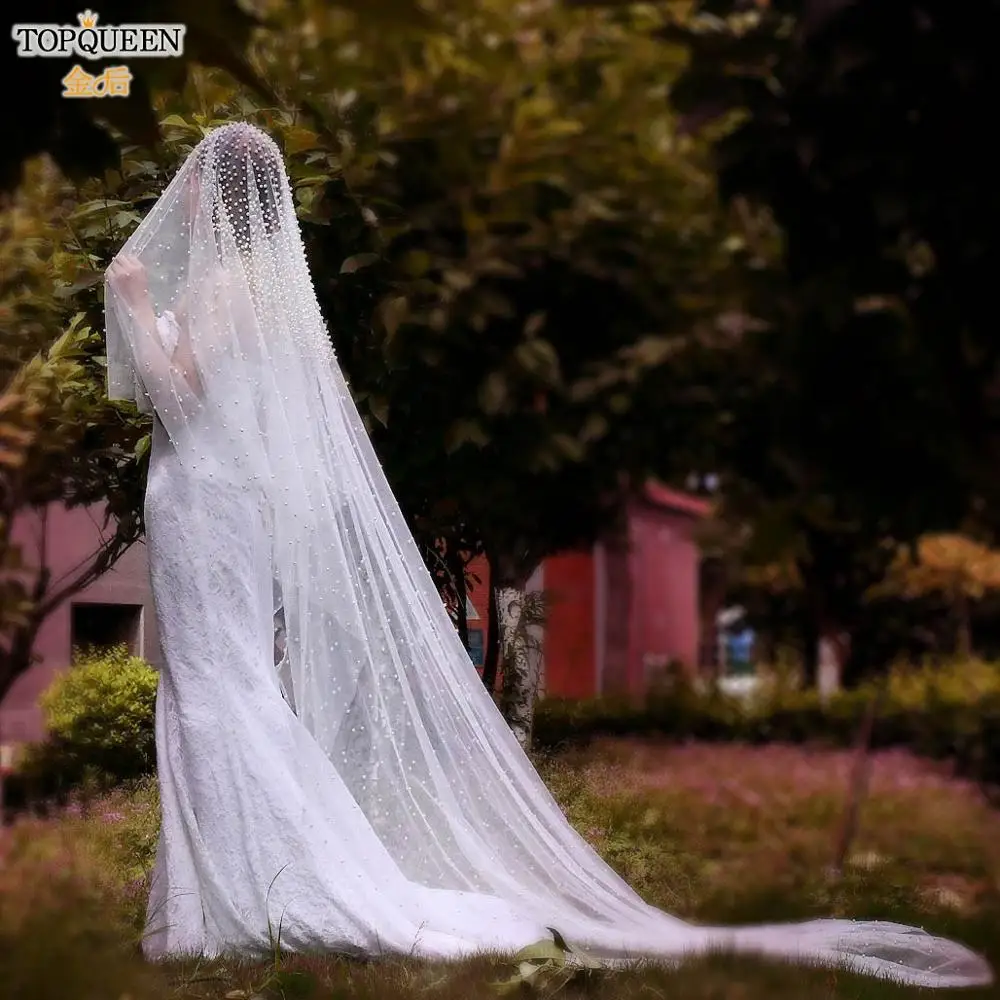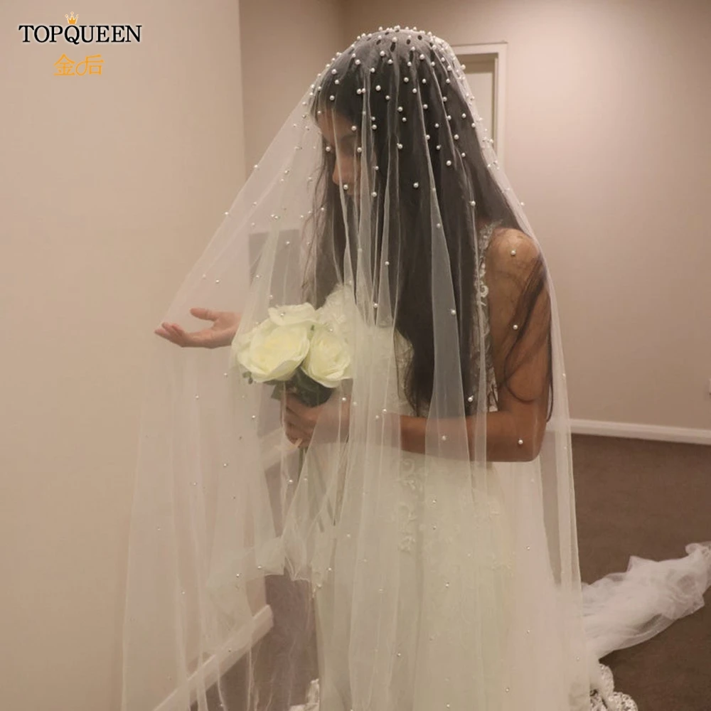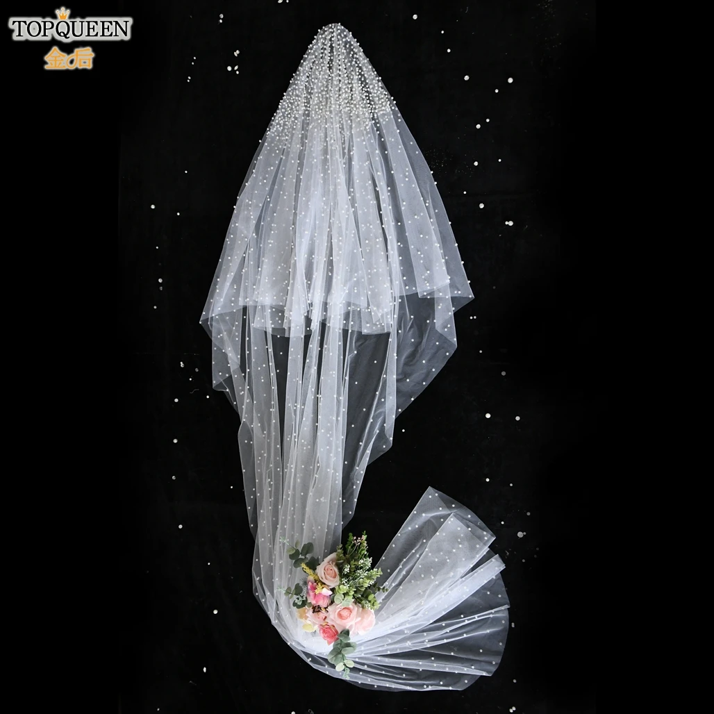 Свадебная фата TOPQUEEN V08, 3 м, Длинная фата с жемчугом, белая Фата цвета слоновой кости, однослойная Фата для невесты, свадебная фата, 2020
