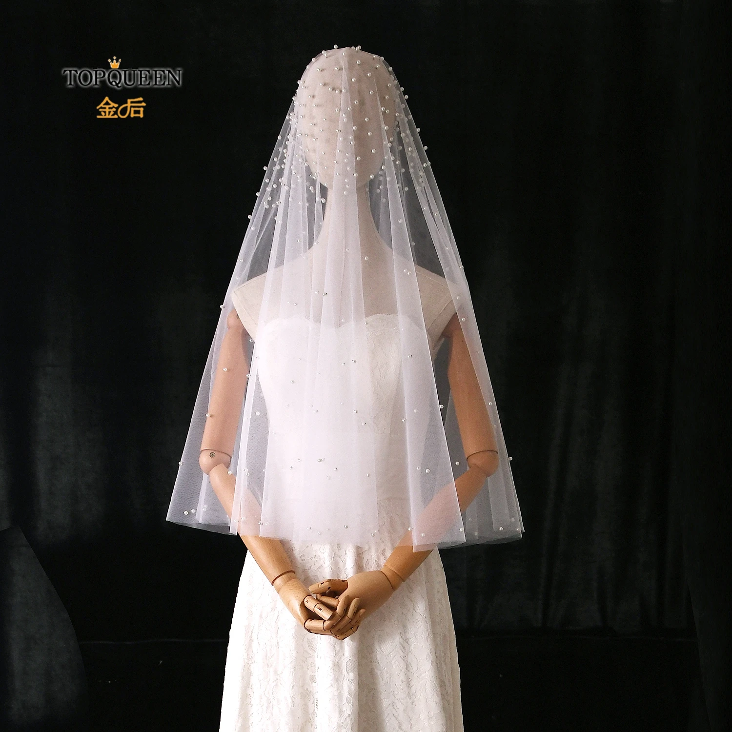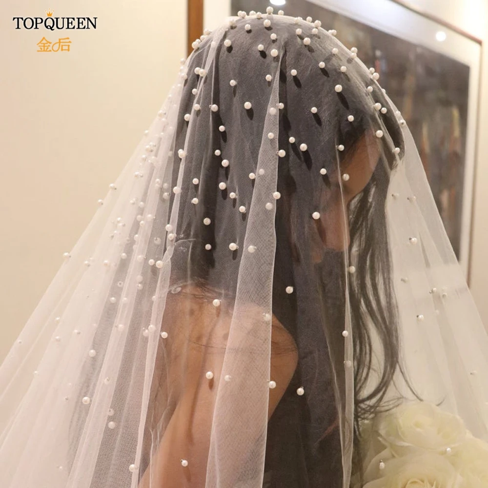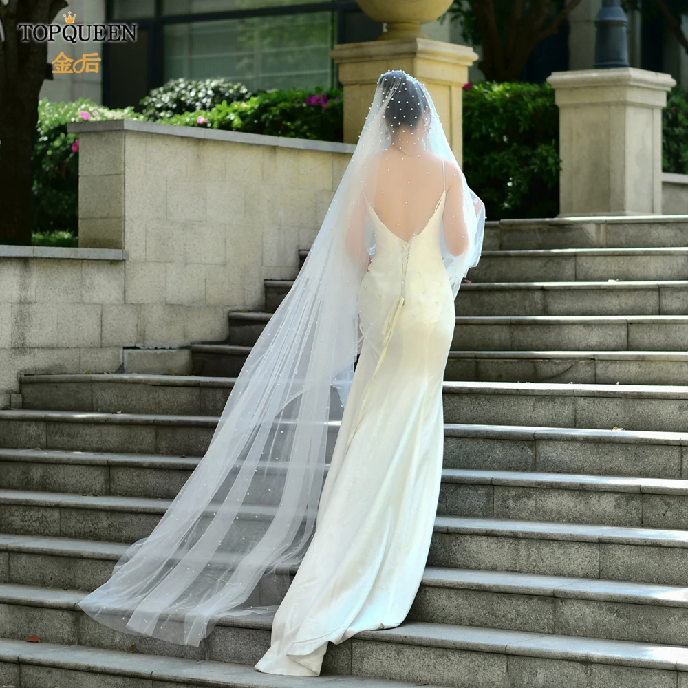 Свадебная фата TOPQUEEN V08, 3 м, Длинная фата с жемчугом, белая Фата цвета слоновой кости, однослойная Фата для невесты, свадебная фата, 2020