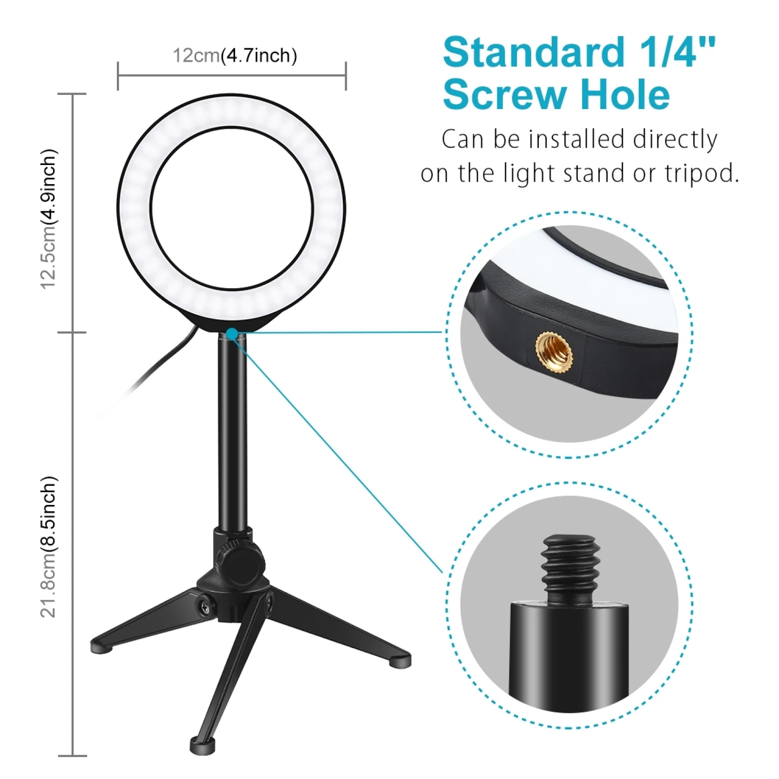 Кольцесветильник светильник для фотосъемки PULUZ, 4,7 дюйма, со штативом, кольцевая Led лампа для селфи, лампа для видеосъемки Youtube TikTok