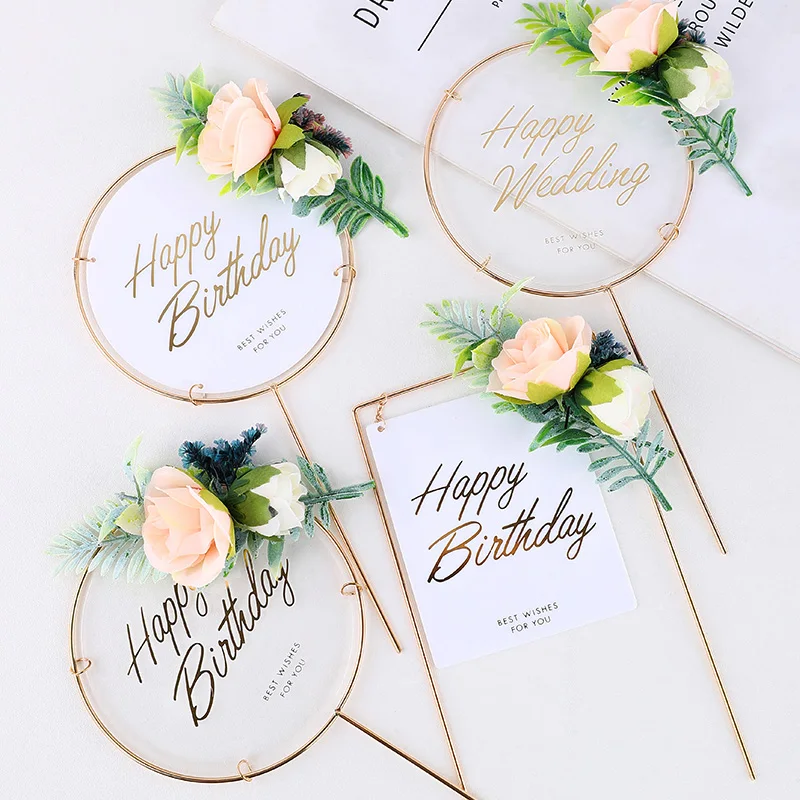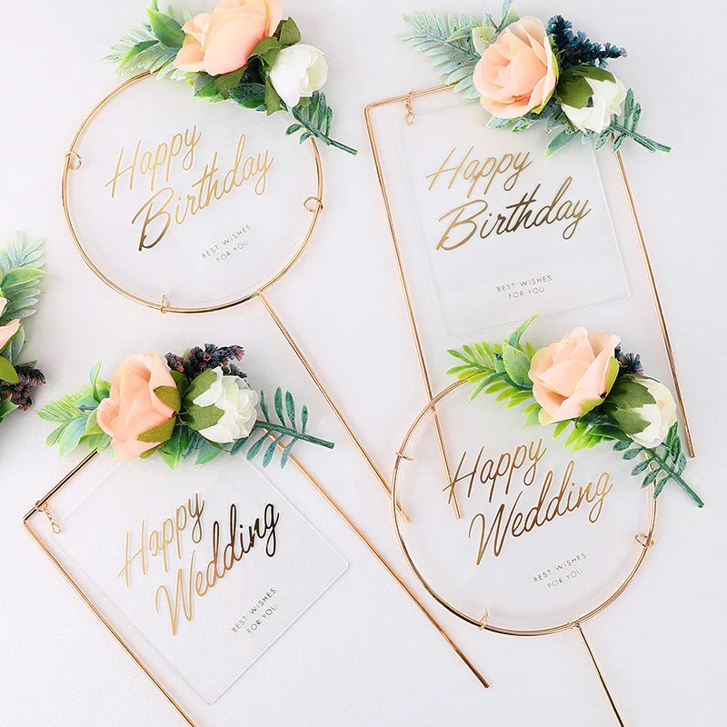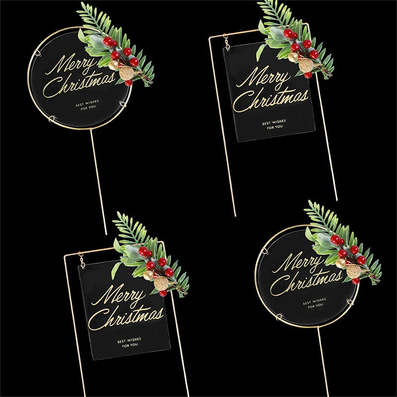 Рождественский Топпер для торта, искусственный цветок, Счастливая свадьба, металлическое акриловое украшение для рождественской вечеринки