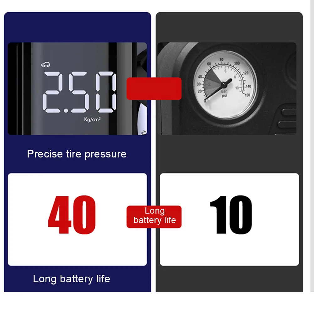 Портативный универсальный автомобильный воздушный компрессор, Электрический мини-насос, перезаряжаемый со светодиодным аварийным освещением, 12 В, 150psi