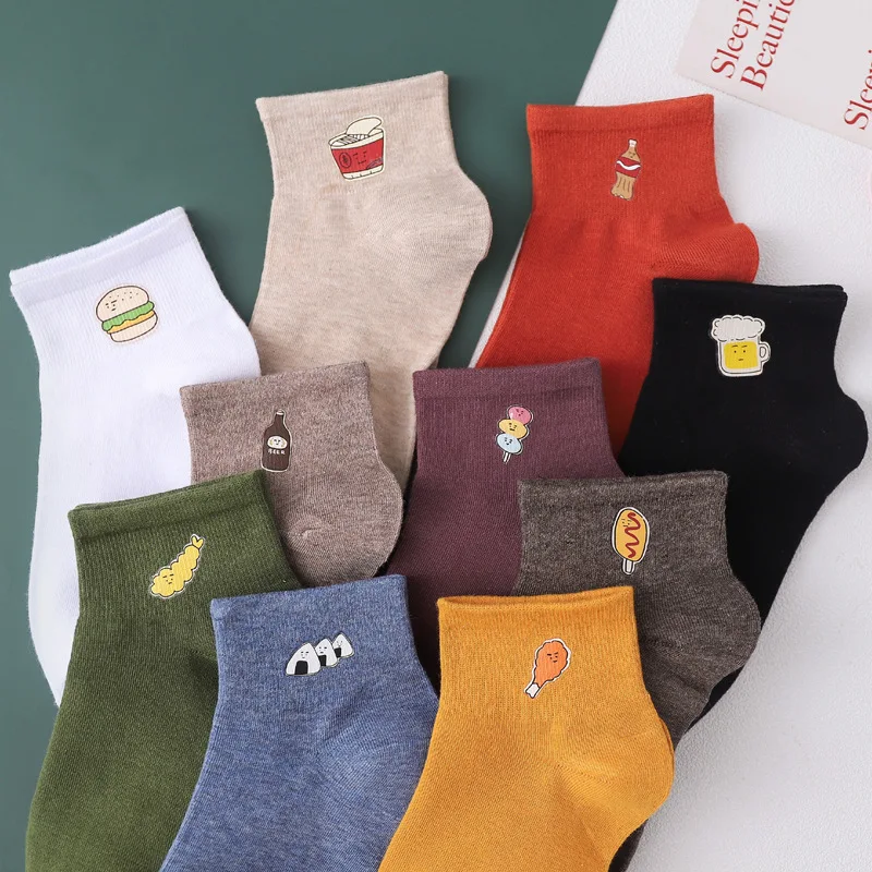 Женские хлопковые носки в стиле Харадзюку, повседневные Смешные Милые спортивные в полоску, в горошек, с рисунком смайлика, в японском стиле, черные белые