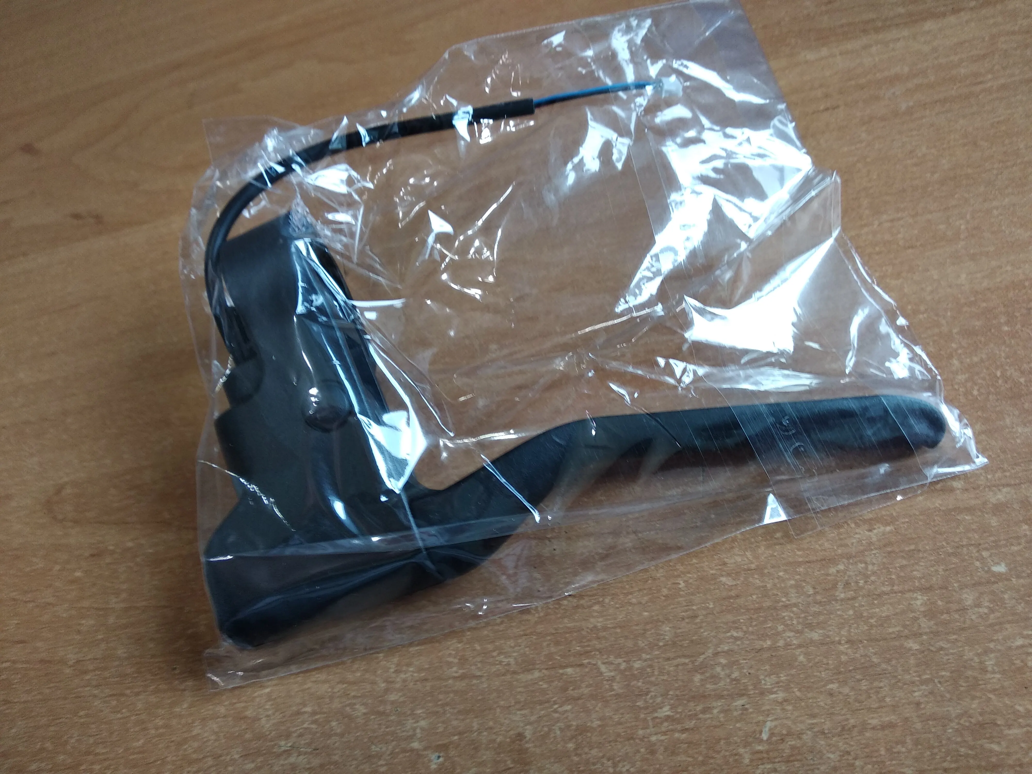 Тормоз новой версии. Для установки в самокат первых версий пришлось менять вместе с кабелем. Работает отлично.
