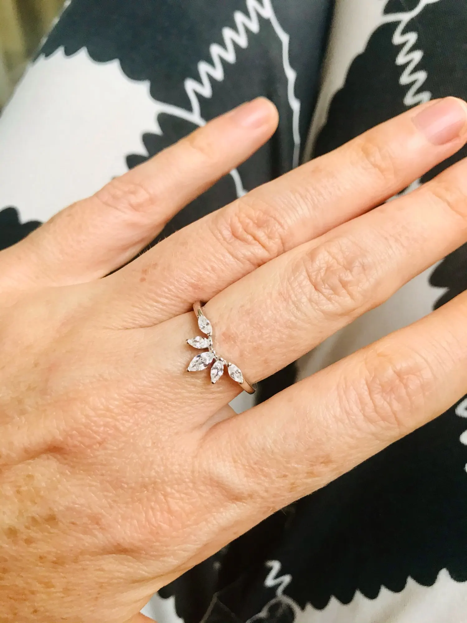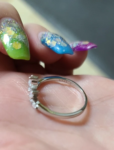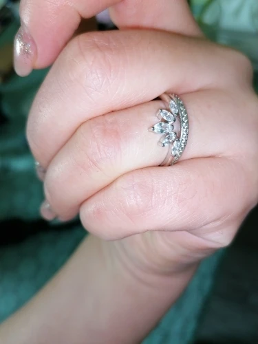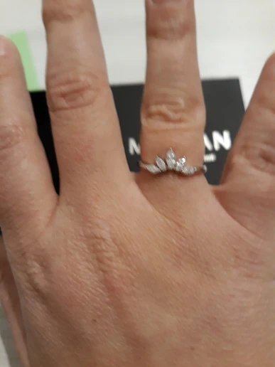 Красивое колечко, камушки блестят. Размер 6 на 16 как всегда идеально. Заказывала здесь и раньше, насчёт серебра не сомневаюсь, но если металл изменится, то дополню отзыв. Посылка пришла в консолидированном заказе. Спасибо!