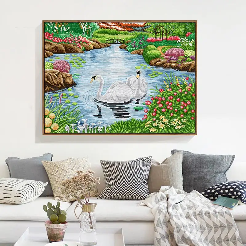 Набор для вышивки крестиком Joy Sunday с принтом два белых лебедей, 14 карат, 11 карат