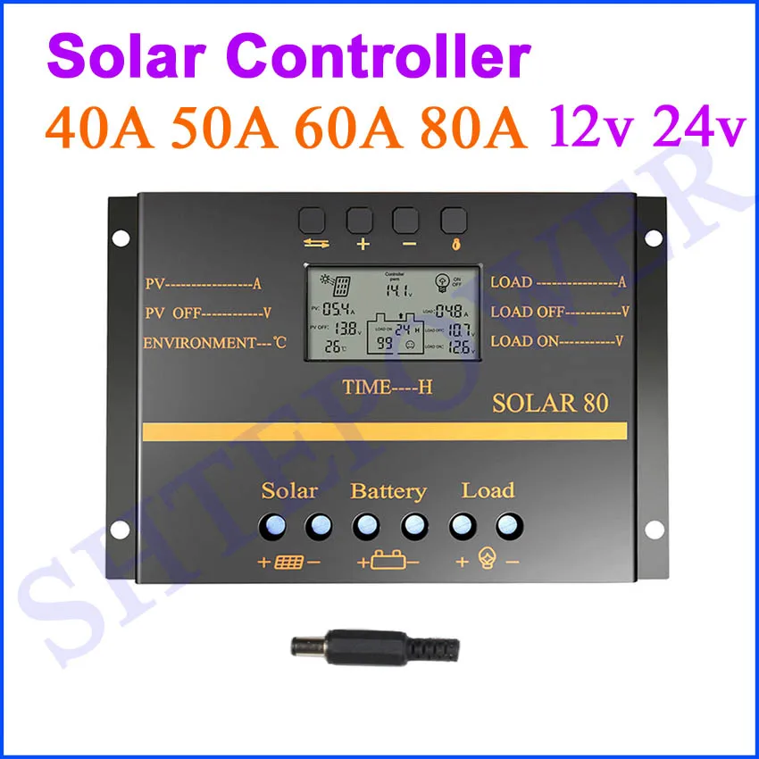 Контроллер заряда солнечной панели, 40 А, 50 А, 80 А, 60 А, 12 В, 24 В, автоматический ЖК-дисплей, USB зарядное устройство для солнечной батареи, высокая эффективность, ШИМ-регулятор MP80