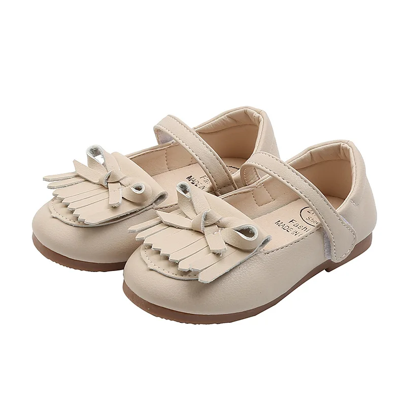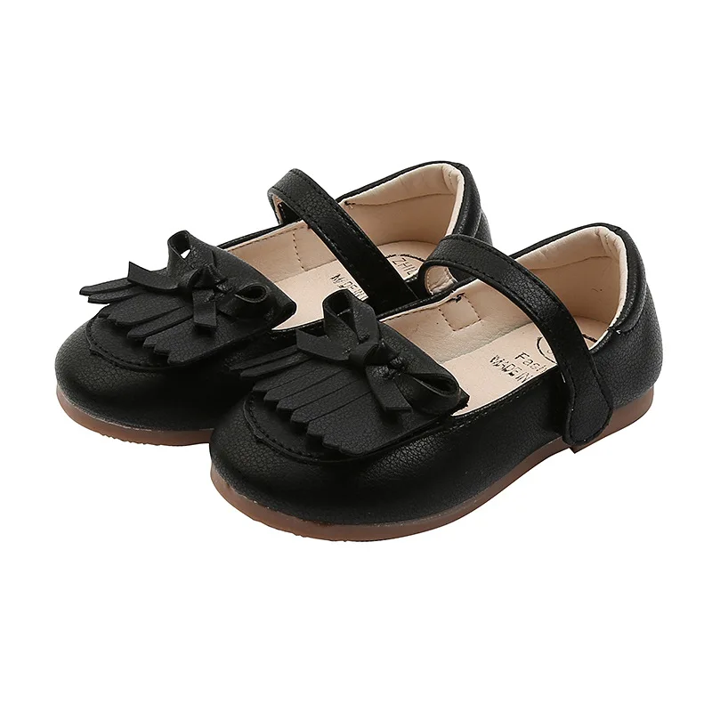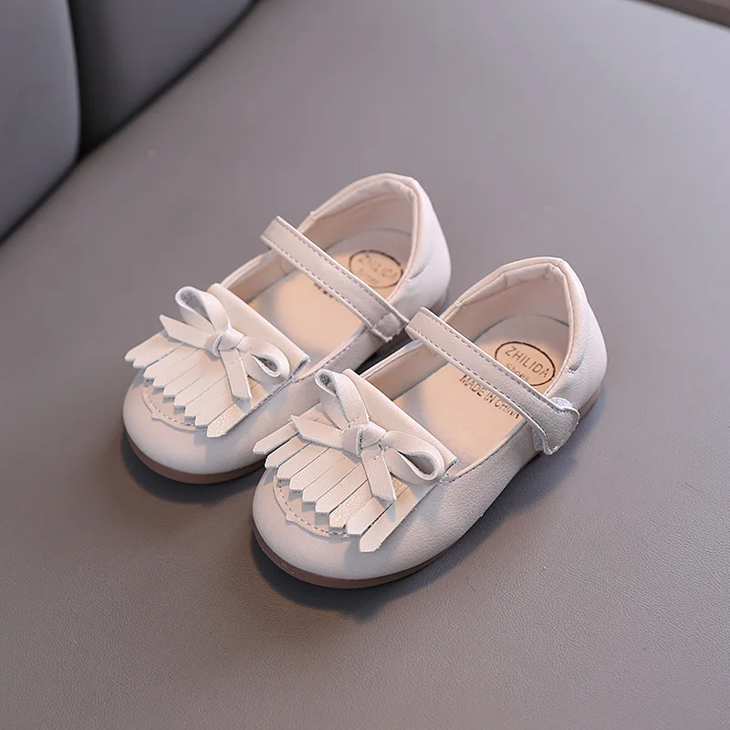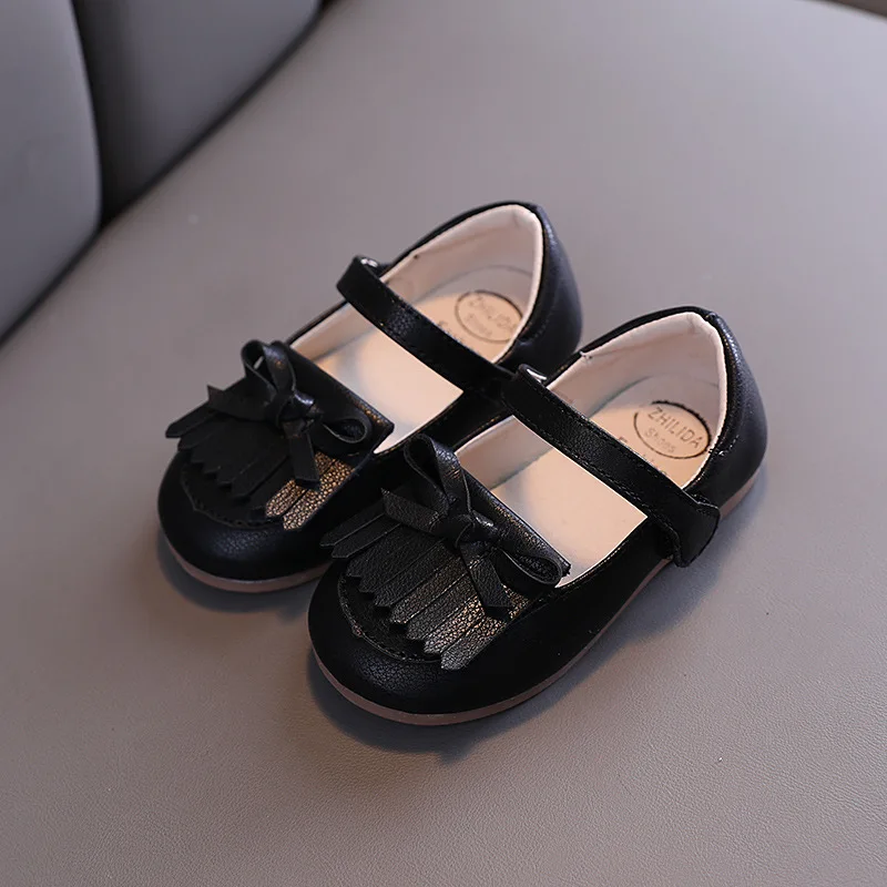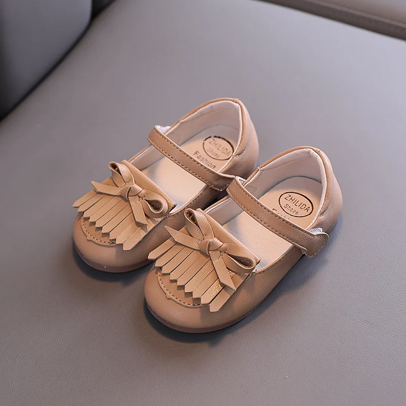 Обувь для маленьких девочек, детские туфли на плоской подошве, милые кожаные туфли принцессы, мягкие Нескользящие туфли с бахромой и бантиком, #21-30, новинка на осень