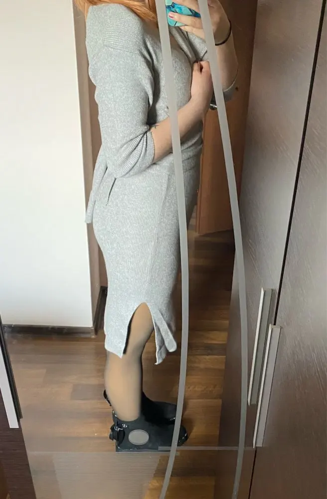 Очень прикольное платье. Сначала мы не смогли понять почему одна грудь наружу , но потом разобрались в конструкции и оказалось достаточно оригинально. Цвет болото-коричневый. Мне идёт, но делайте поправки