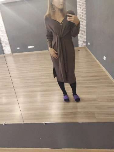 Ткань очень теплая и шелковистая. Выглядит так, как будто вы можете отрегулировать холодную осень. У него есть две прорези с каждой стороны. Тоу может завязывать его спереди или сзади, я думаю, что он лучше смотрится на спине. Я, вероятно, получу его во всех цветах tbh.