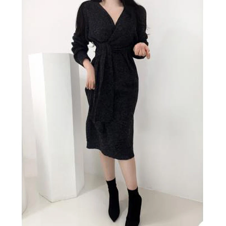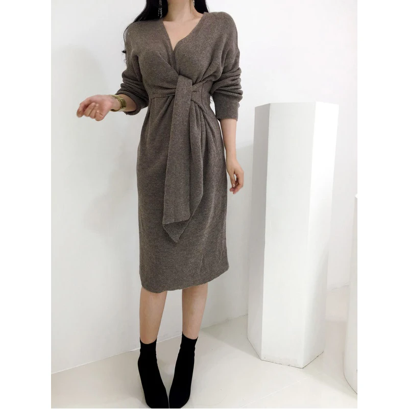 Новинка 2020, женское теплое вязаное платье-свитер WAVSIYIER, женское платье-джемпер с поясом, повседневное плотное вязаное платье в Корейском стиле