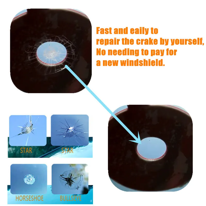 • Этот комплект предназначен для предоставления владельцам транспортных средств необходимой информации и инструментов для ремонта небольших повреждений ламинированных лобовых стекол автомобиля.
