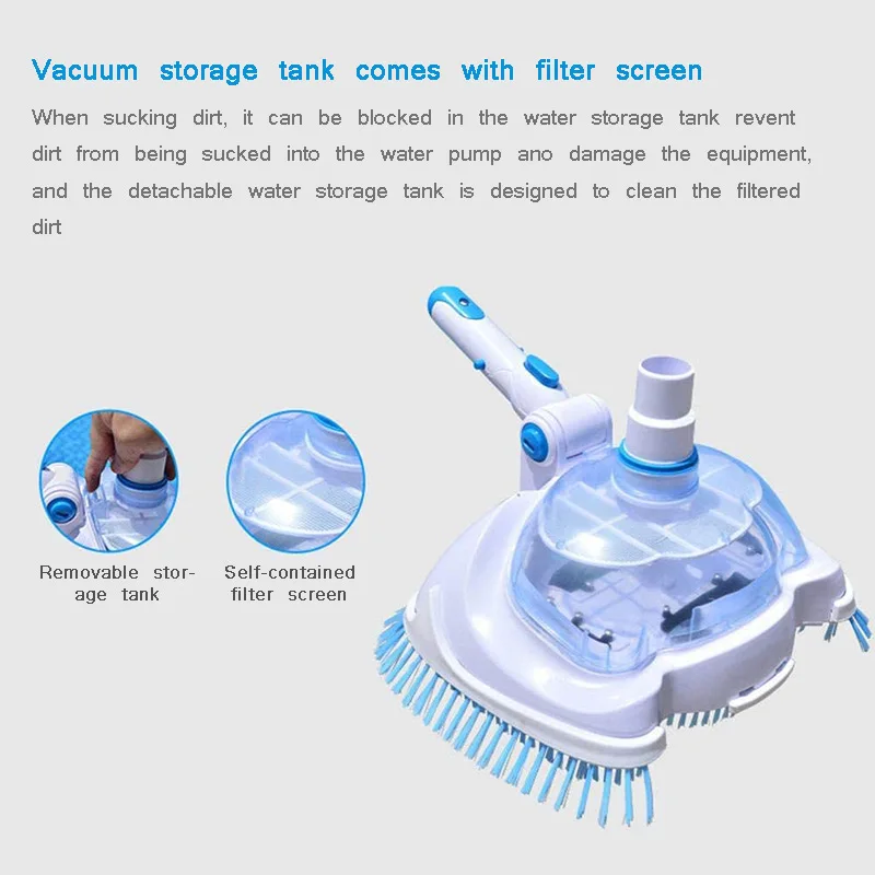 Эта вакуумная всасывающая головка имеет собственный фильтр-экран. Грязь может быть заблокирована в отсеке для хранения воды во время всасывания, чтобы предотвратить попадание грязи в водяной насос и повреждение оборудования.