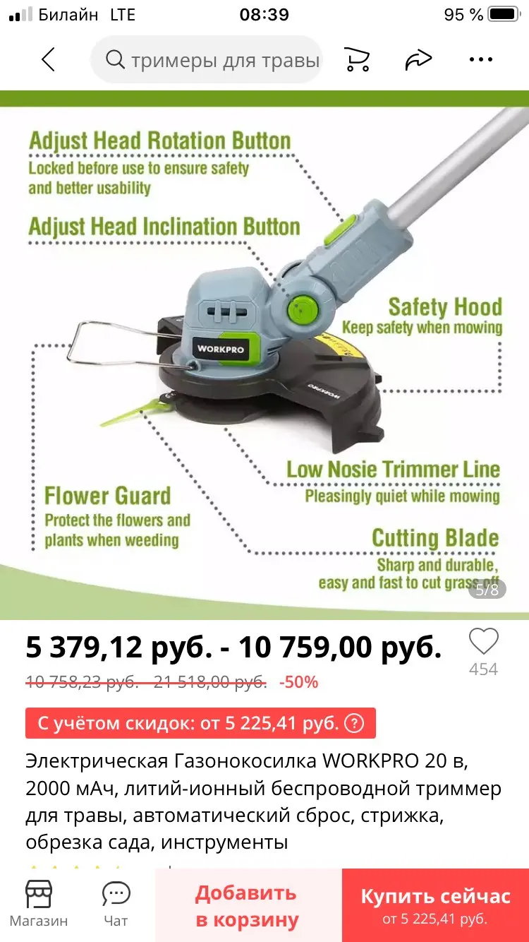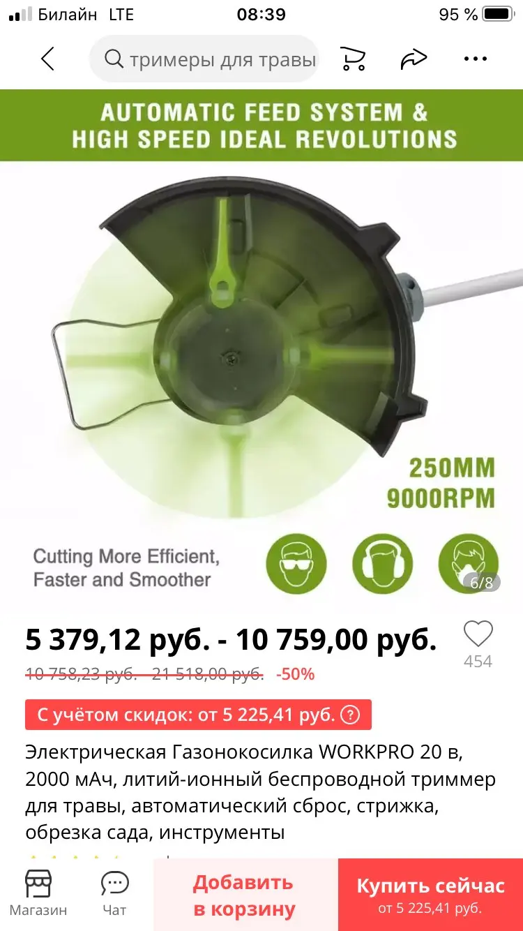 Не очень быстрая доставка,пришло с задержкой в 1 месяц.Но это не страшно,главное до начала сезона косилка пришла.Попробую в действии дополню отзыв.Коробка пришла мятая но в середине всё целое,всё работает!