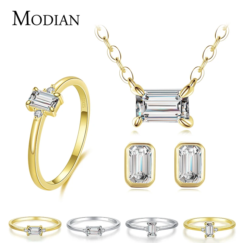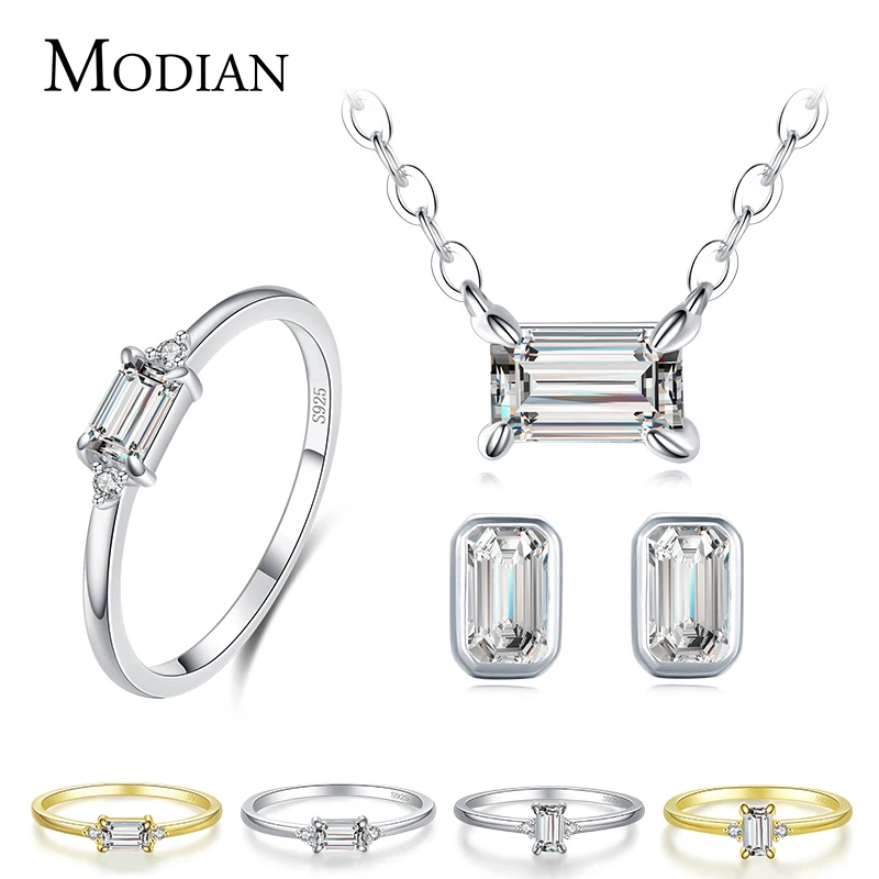 Modian 925 Стерлинговое Серебро модный Шарм AAA циркон ожерелье серьги кольца Свадебные набор украшений для женщин, хорошее ювелирное изделие