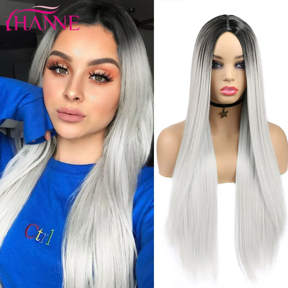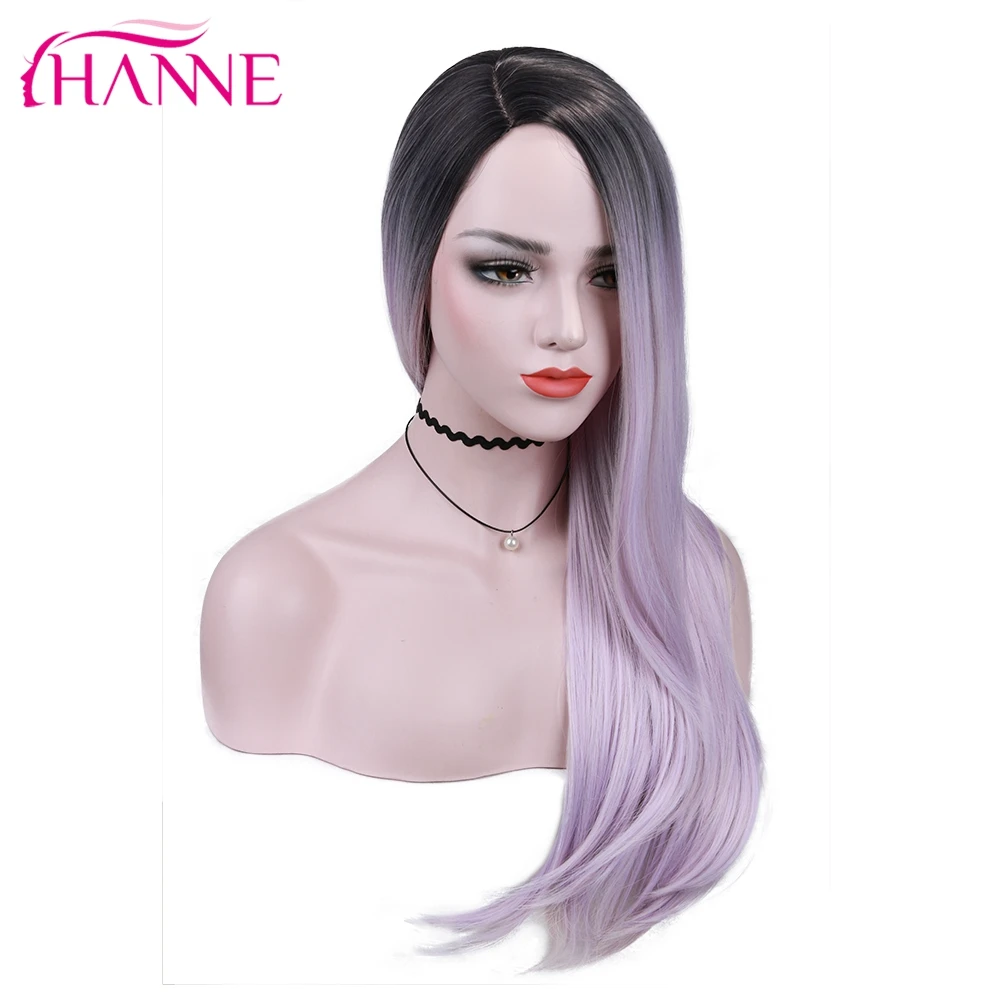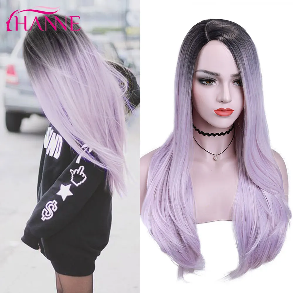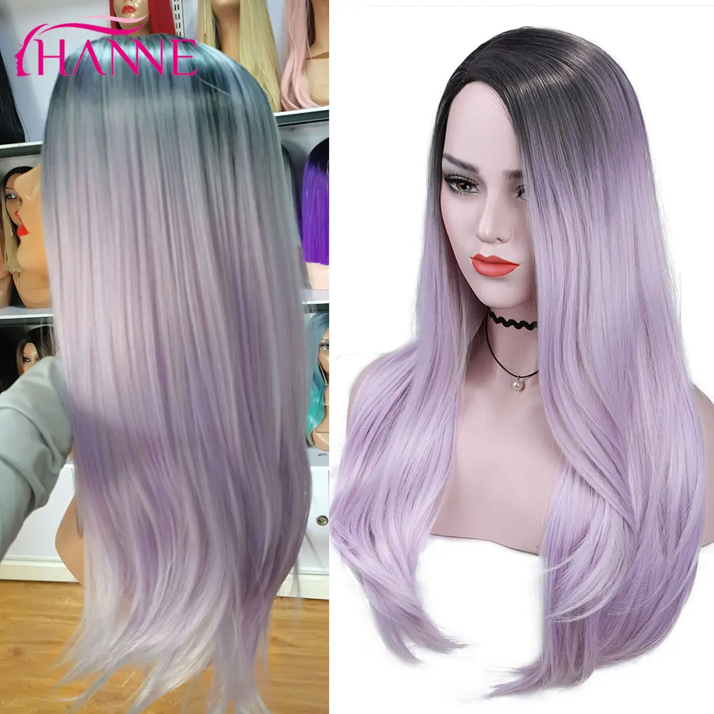 HANNE Омбре светильник-фиолетовыйкрасныйсинийжелтый термостойкие волосы длинные прямые синтетические парики для белых женщин