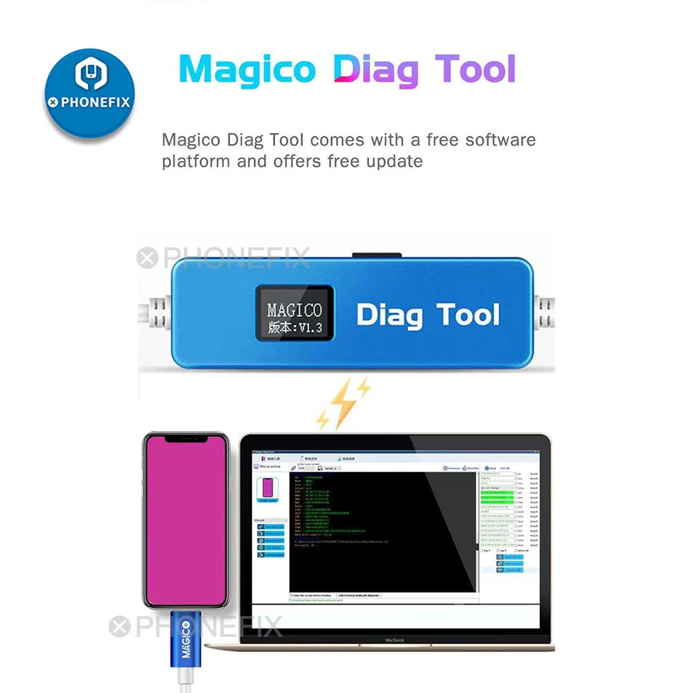Инструмент Magico Diag DFU автоматически переходит в режим фиолетового экрана iPhone и ipad без компьютера. Он имеет бесплатную платформу программного обеспечения, бесплатное обновление!