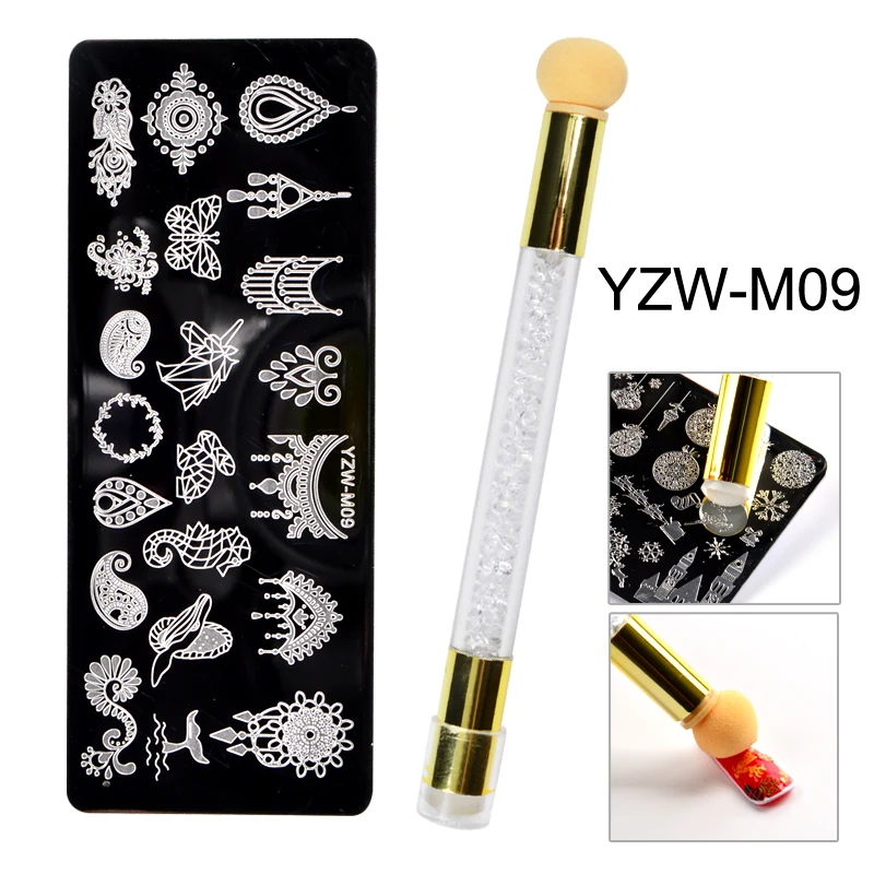1 шт 10*4 см шаблоны для стемпинга ногтей + 1 шт ручкаИнструкции по использованию:1) Снимите защитную пленку2) Нанесите тиснение лаком на желаемый дизайн3) удалите излишки лака скребком под углом 45 °4) Возьмите дизайн с помощью штампа с помощью качения5) Нанесите штамп на ноготь с помощью движения прокатки6) Нанесите верхнее покрытие для более длительного эффектаРазмер: 12x6cm
