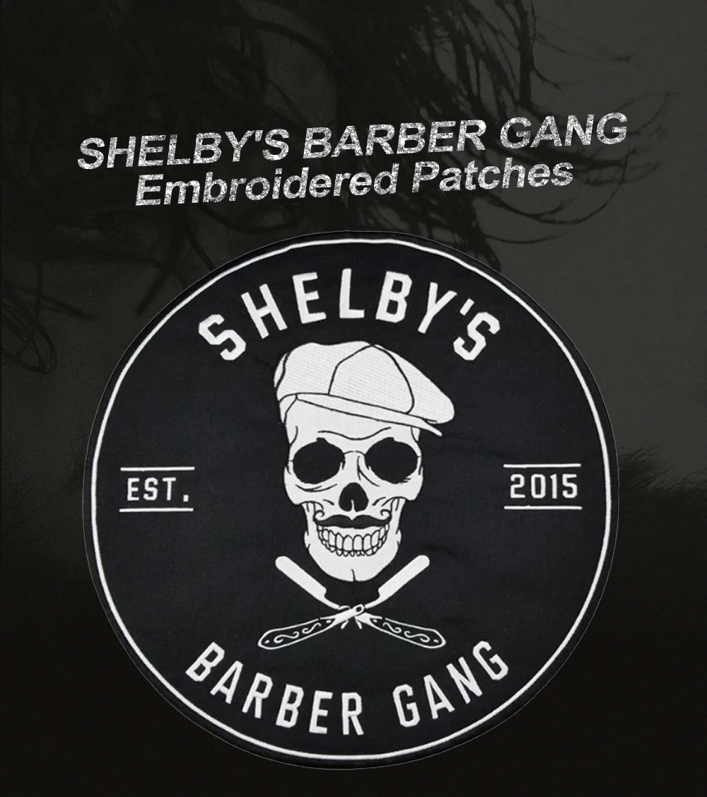 SHELBY'S Парикмахерская банда вышивка патч-железо на наклейках для одежды DIY индивидуальный дизайн большой размер сзади куртки Череп аппликации