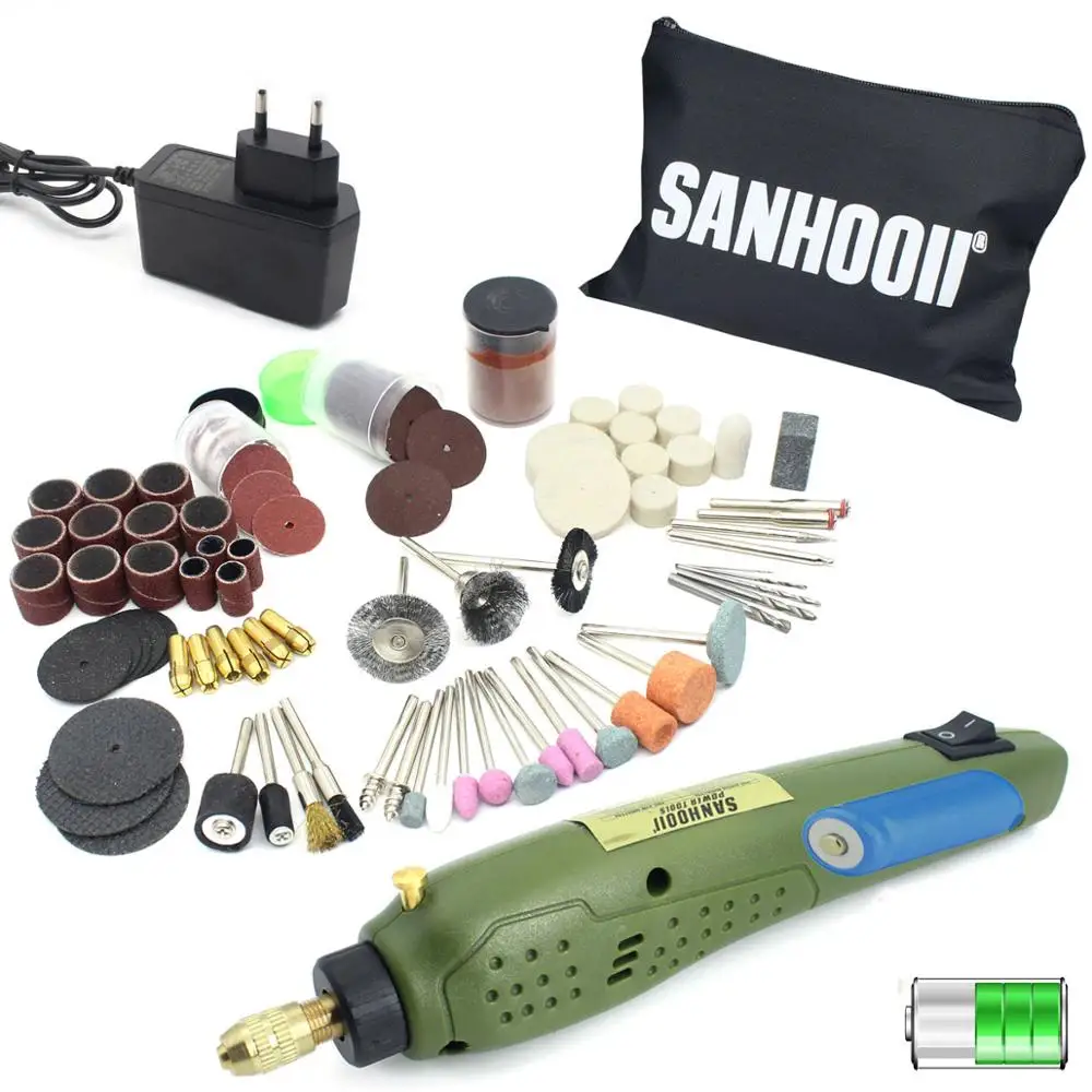 SANHOOII портативный беспроводной мини Электрический дрель роторный инструмент батарея + шлифовальные аксессуары гравировка ногтей набор электроинструментов