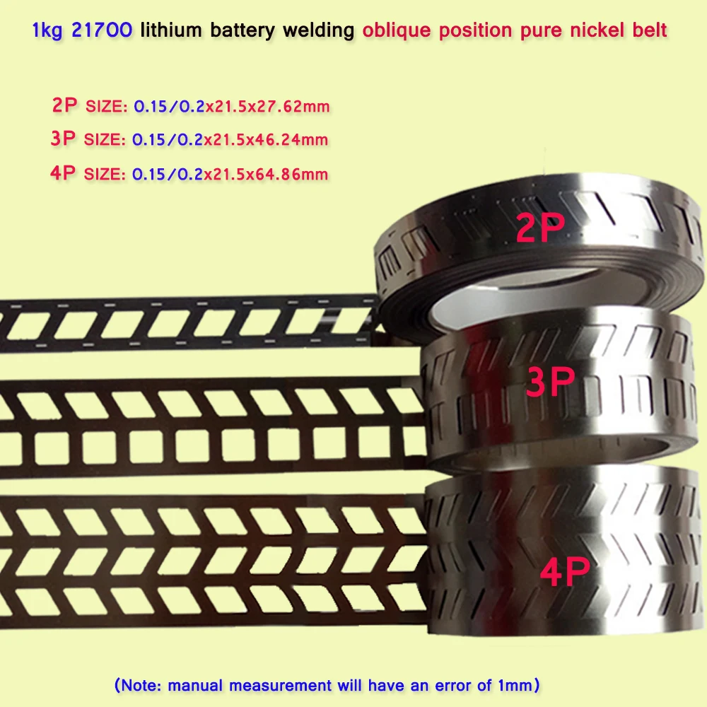 Полоса из чистого никеля с косым рядом, 1 кг, 21700 дюйма, 2P3P4P, полоса из чистого никеля 99.93% для литиевой батареи, без кронштейна, для точечной сварки