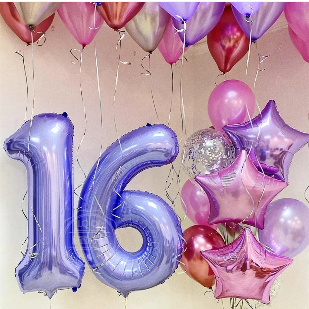 Воздушный Шар фольгированный, 3040 дюйма, розовые, золотые, серебряные цифр, 2 шт.