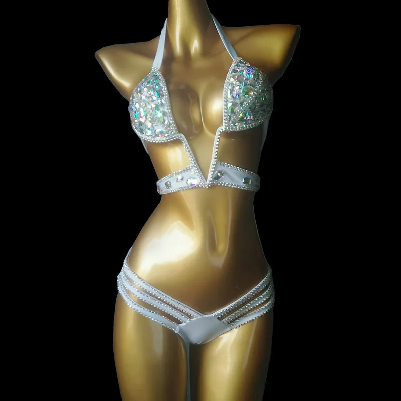 Сексуальный женский комплект бикини Стразы для отпуска, купальник с бриллиантами, пляжная одежда с блестящими камнями, Женский костюм для ночного клуба и диджея
