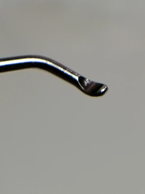 Пришла очень быстро. Кюретка кажется называется?Думаю очень удобная под ноготок залазить,вычищая всё лишнее там. В педикюре!. Спасибо за хороший товар. думаю именно это и хотела. буду учится ей пользоваться. Всё ровное,без каких нибудь зазубрин.длинна полностью 13,7 см .Рабочий наконечник ширина 2 мм. боком примерно 1 мм.