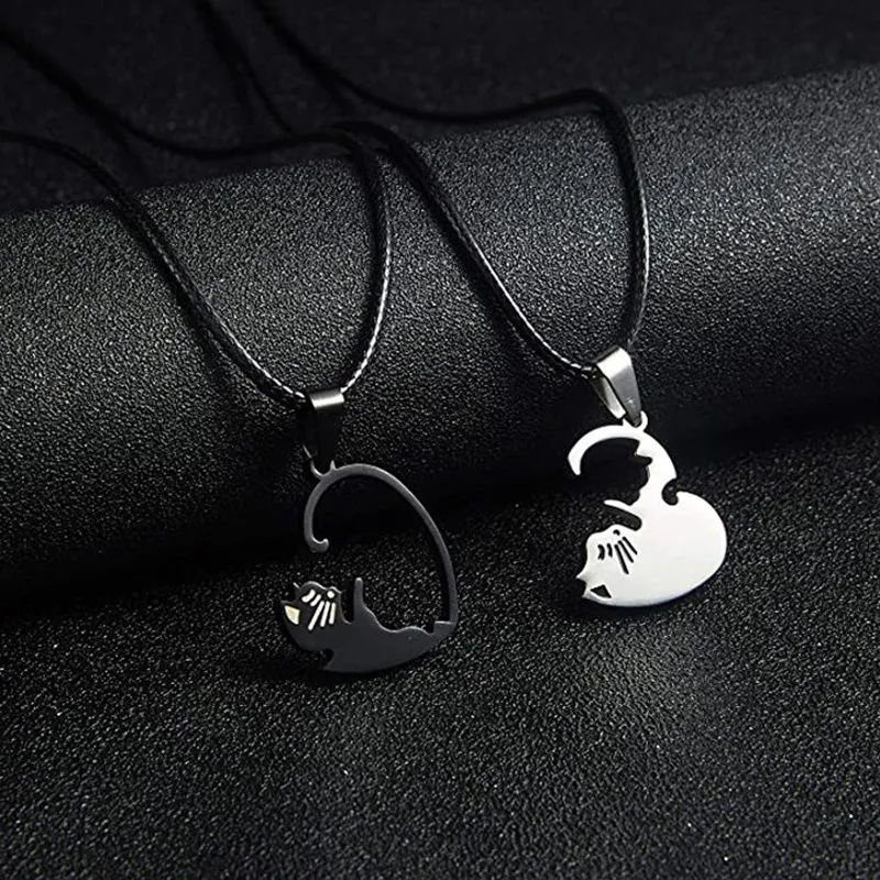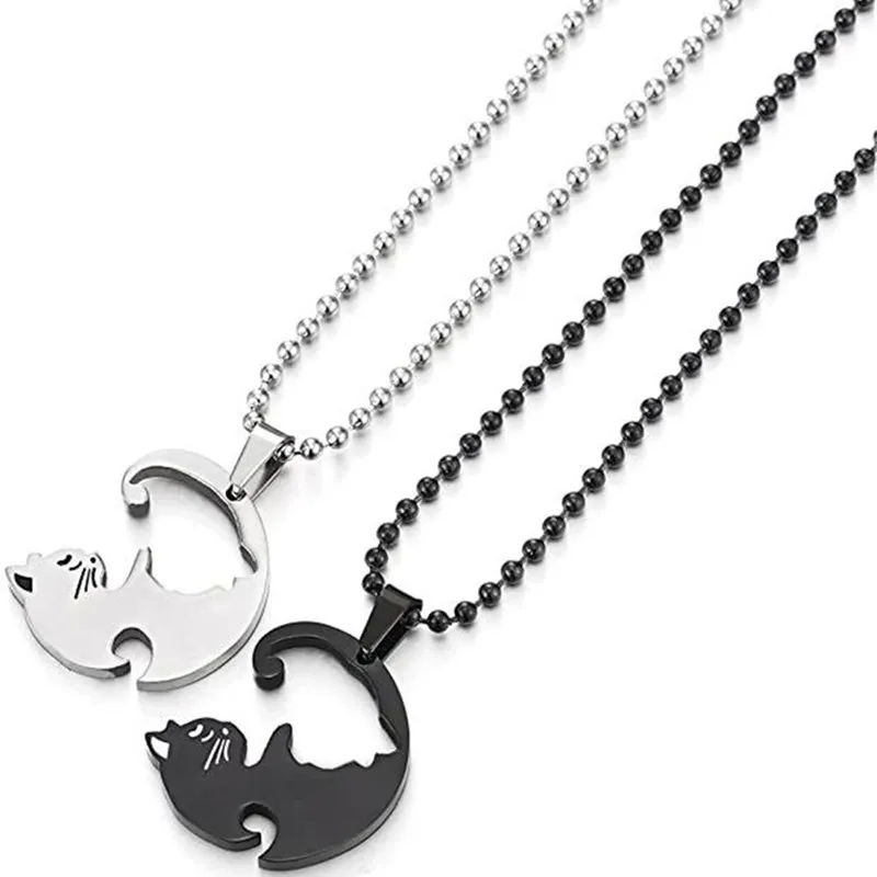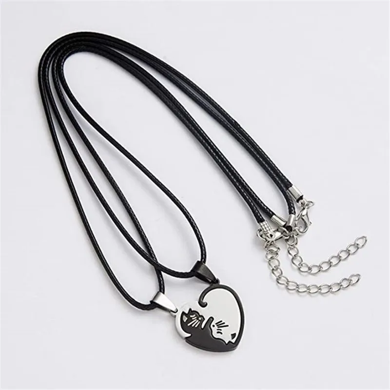 Ожерелье в виде сердца для пар, милый мультяшный Кот, ожерелье с подвеской простое цвет, ожерелье в виде черного животного, ювелирные изделия, подарок для девочек и мальчиков, оптовая продажа