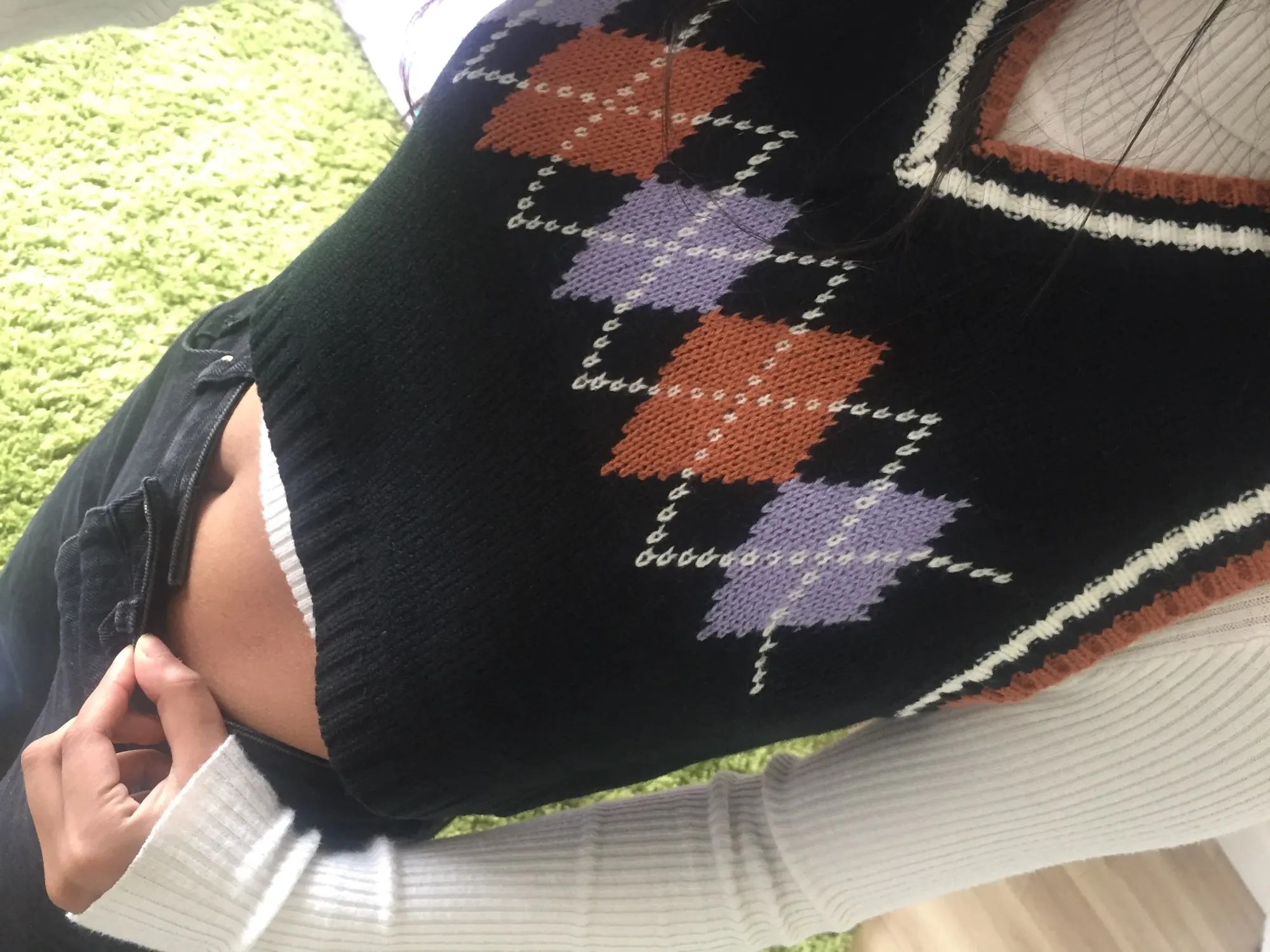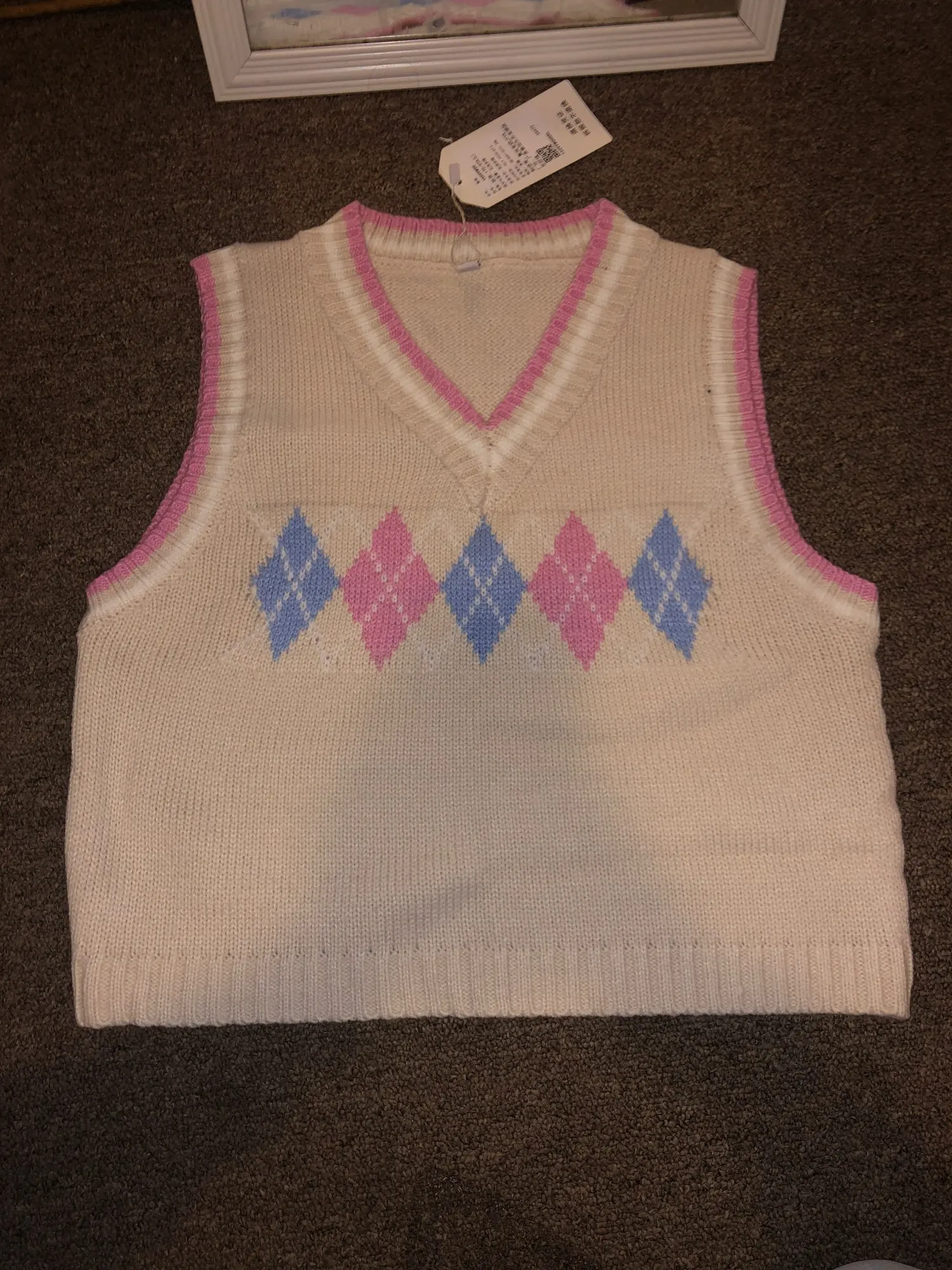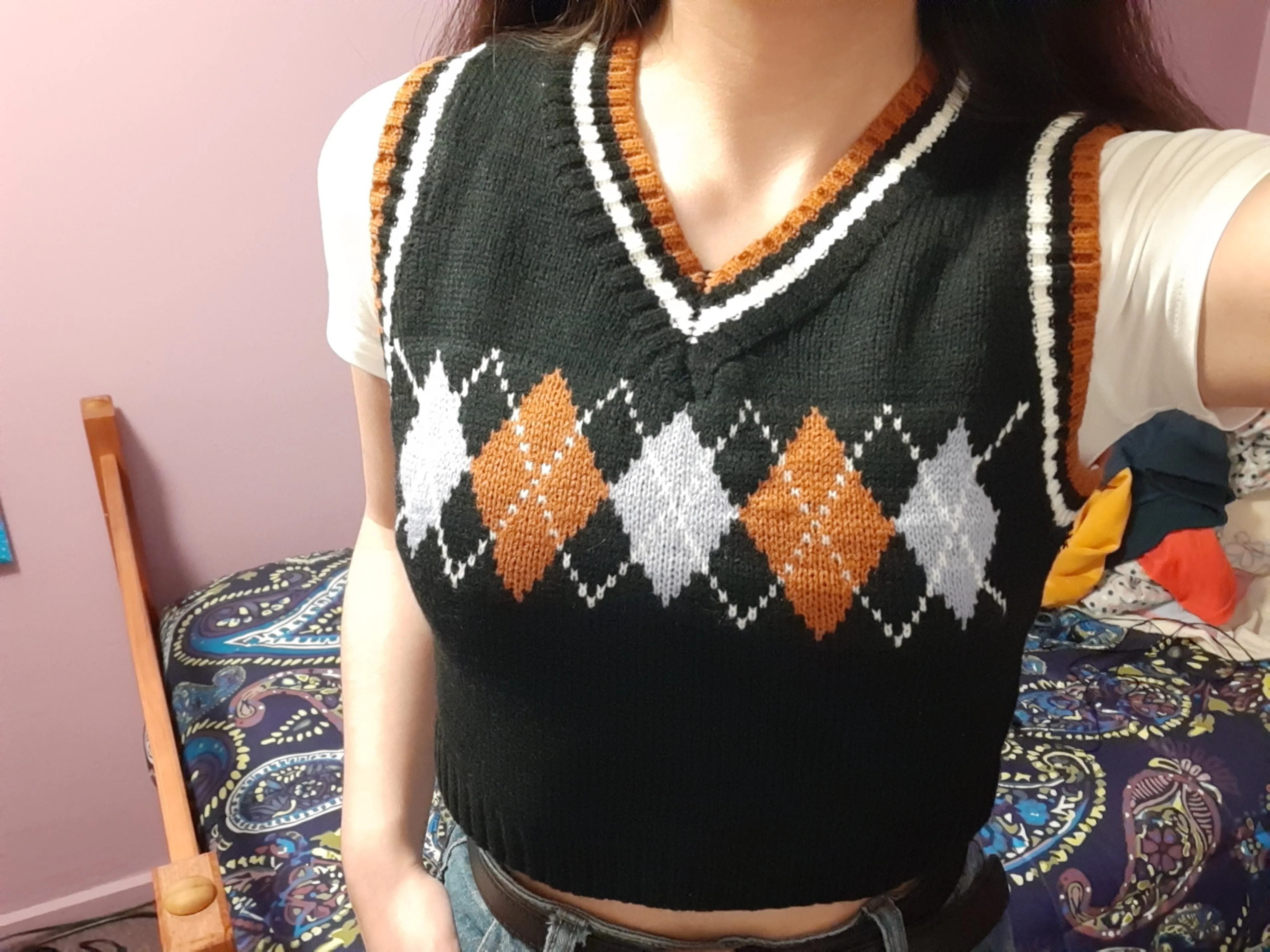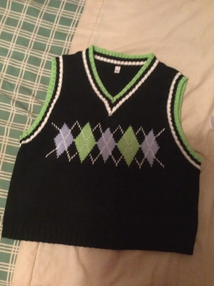 Super cute sweater vest!! Fits a little loose but i just tie it in the back so it can fit more snug:) also the color of the vest is more of a pale beige yellow color rather than a pastel yellow color!! Other than that 10/10!! Shipped in about 3 weeks