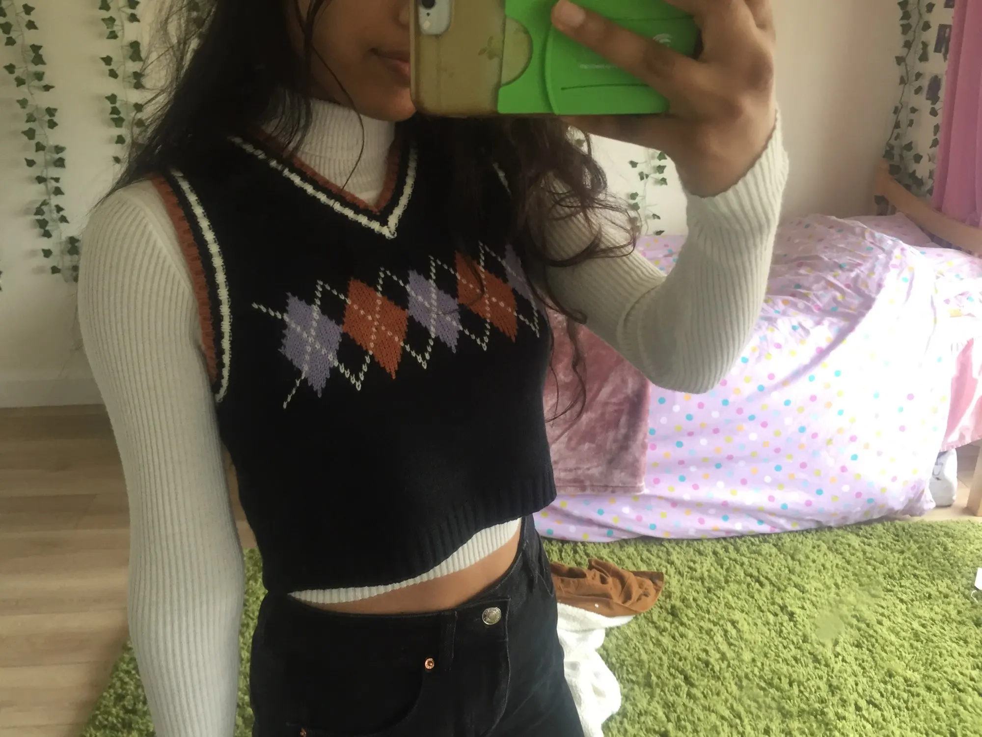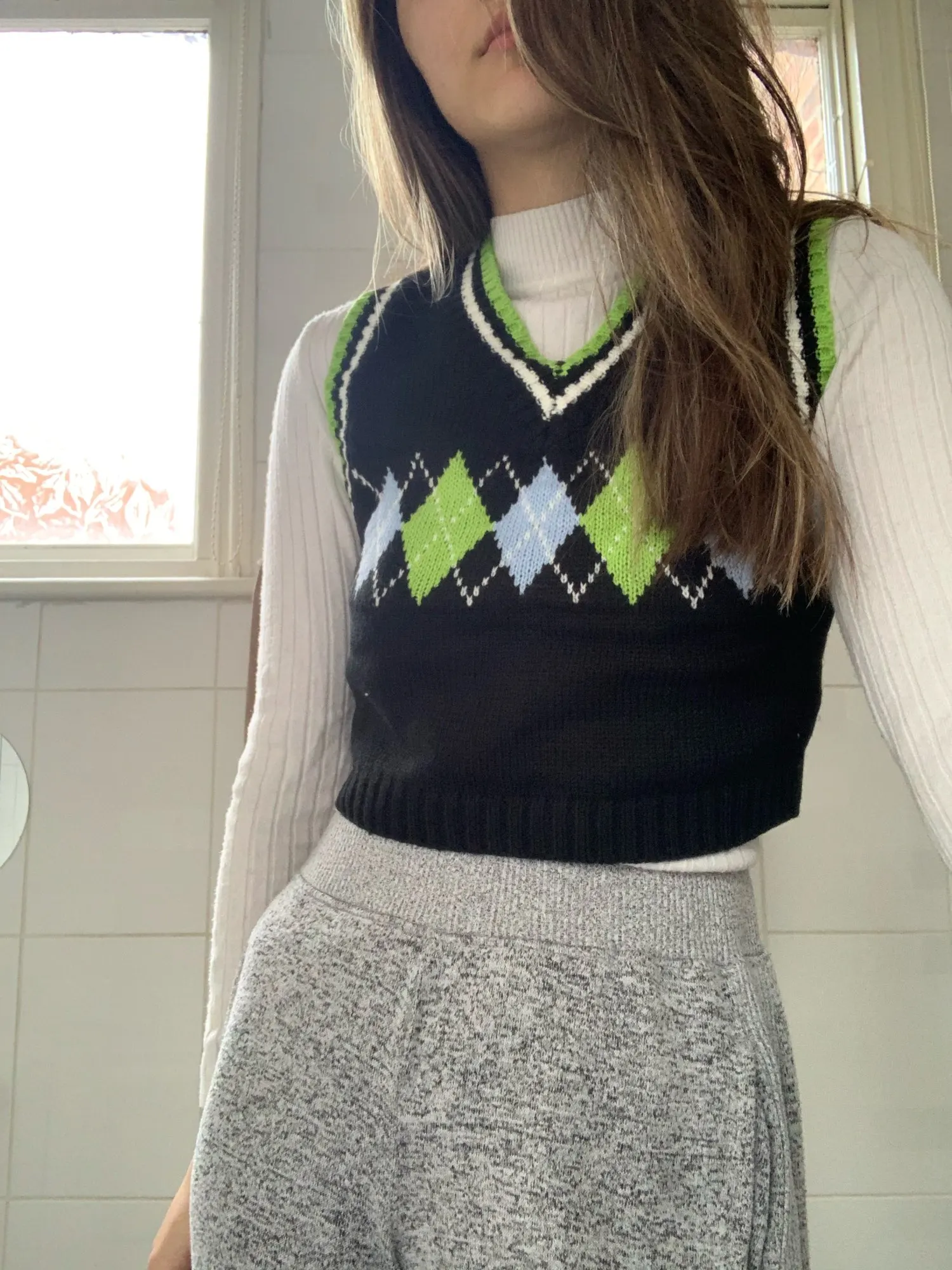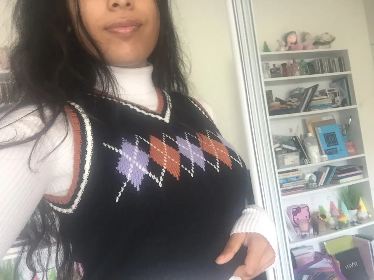 Super cute sweater vest!! Fits a little loose but i just tie it in the back so it can fit more snug:) also the color of the vest is more of a pale beige yellow color rather than a pastel yellow color!! Other than that 10/10!! Shipped in about 3 weeks