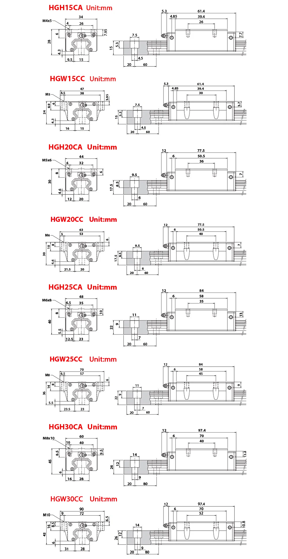 HGH15CA HGW15CC HGH20CA HGW20CC HGH25CA HGW25CC HGH30CA HGW30CC скользящая каретка подходит для HGR 15 20 25 30 линейная направляющая