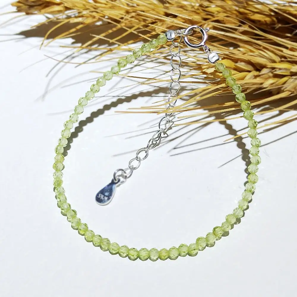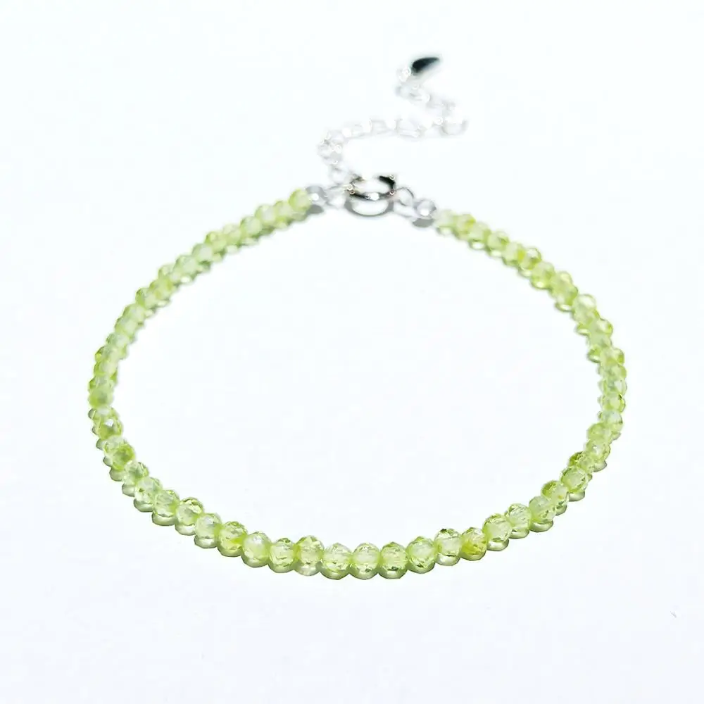 Браслет Lii Ji из натурального драгоценного камня перидота, граненые бусины, 2 мм, застежка из серебра 925 пробы, регулируемый, приятный подарок для детей, друзей, мамы