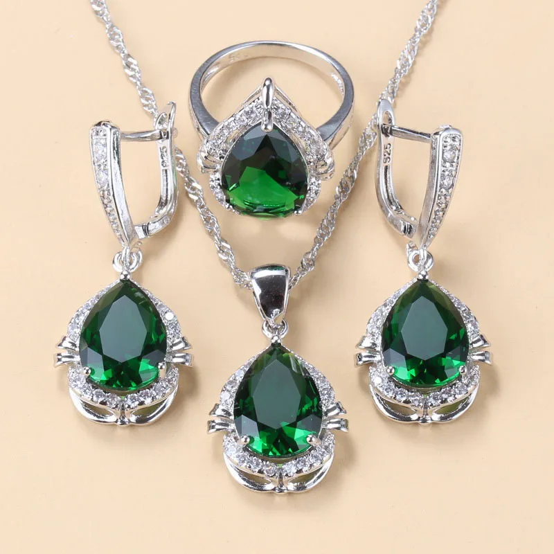 11,11 Продажа Ювелирные наборы из серебра 925 пробы с зеленым кубич...