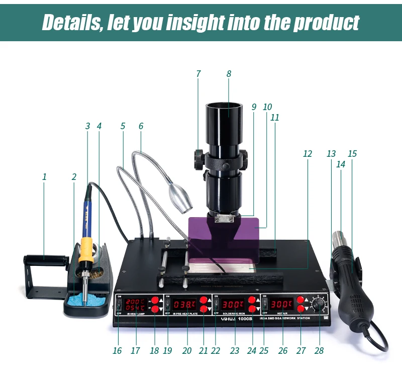 Инфракрасная паяльная станция 3 в 1 YiHua 1000B 1350 Вт BGA