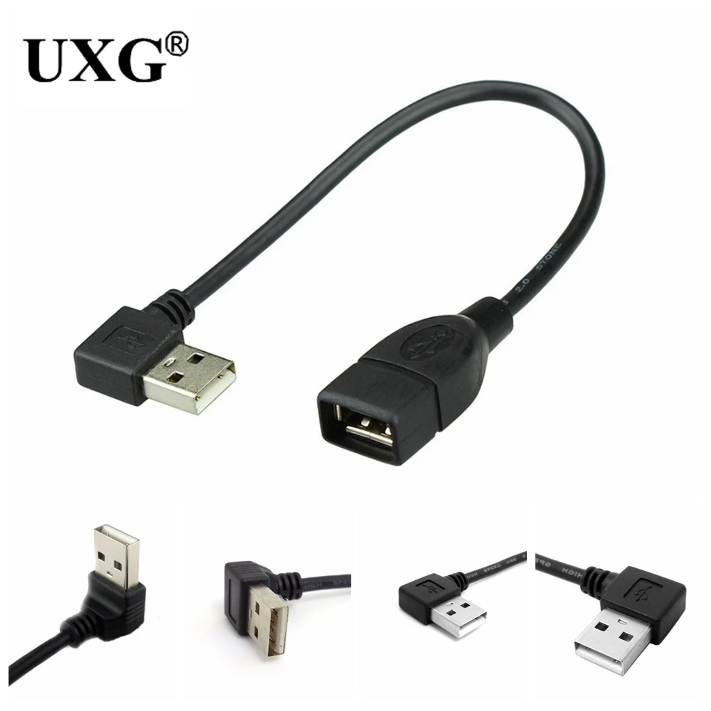10 см, 20 см, USB 2,0 A, штырь-гнездо, 90, угловой Удлинительный адаптер кабель USB2.0, штырь-гнездо, правыйлевыйвнизвверх, короткий кабель, шнур