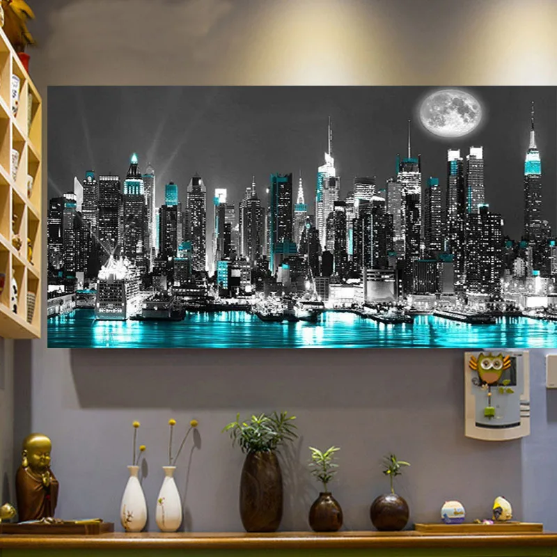 Большая 5D алмазная живопись, Нью-Йорк, черная ночная городская пейзаж, украшение, полностью сверло, алмазная вышивка, Наборы для творчества ручной работы