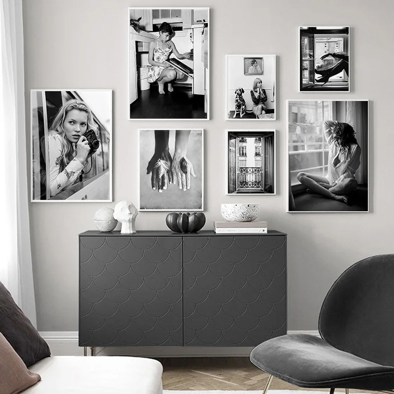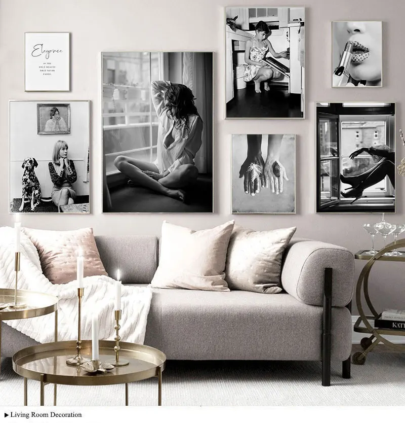 Модный постер, черный, белый, Дамское окно с классическим принтом, настенная живопись на холсте, Современная фотография для девочек, украшение для комнаты