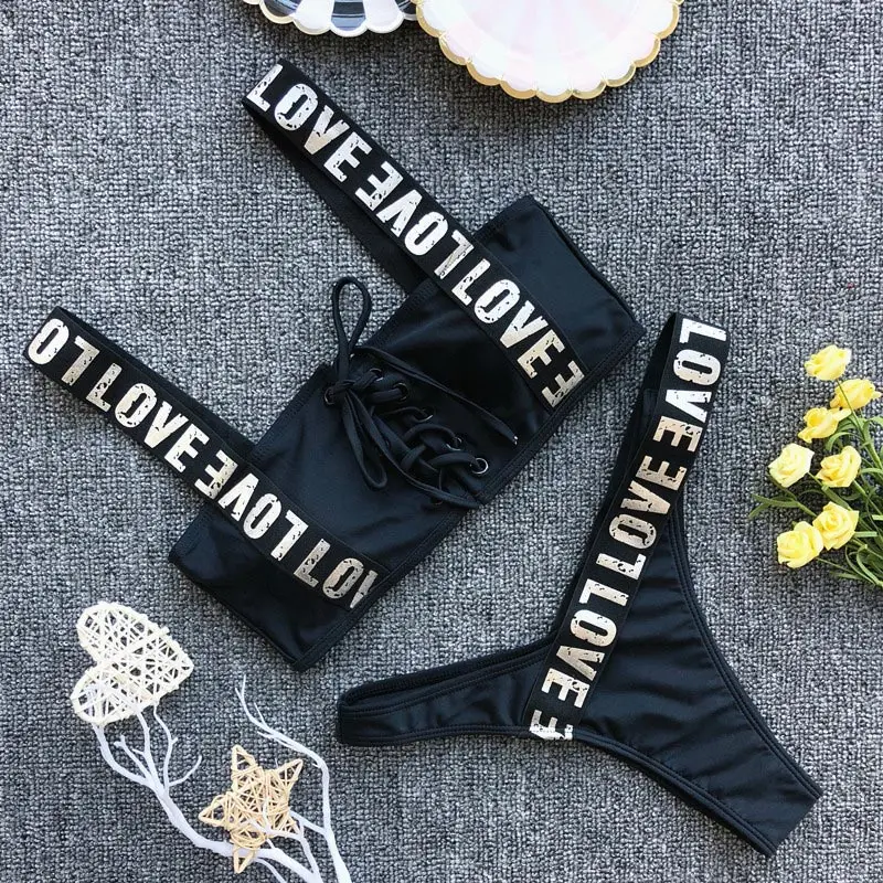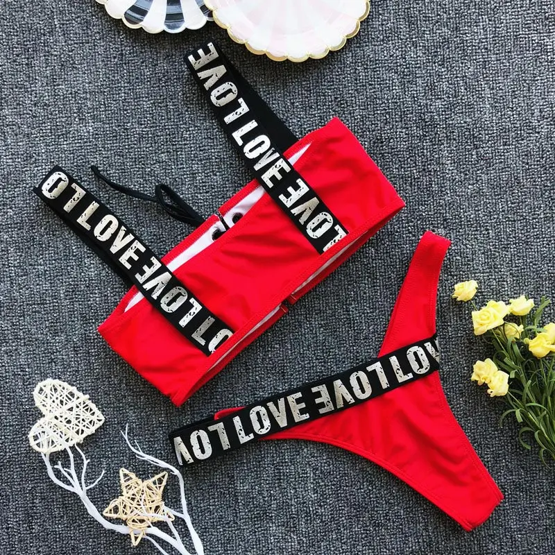 Сексуальный красный комплект бикини 2020 Новый женский купальник с надписью на шнуровке с заниженной талией купальник с подкладкой пуш-ап купальник пляжный купальный костюм