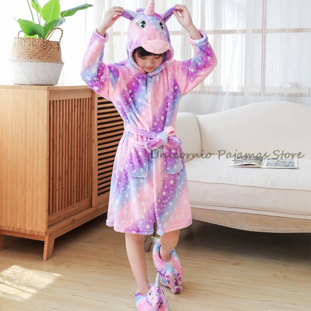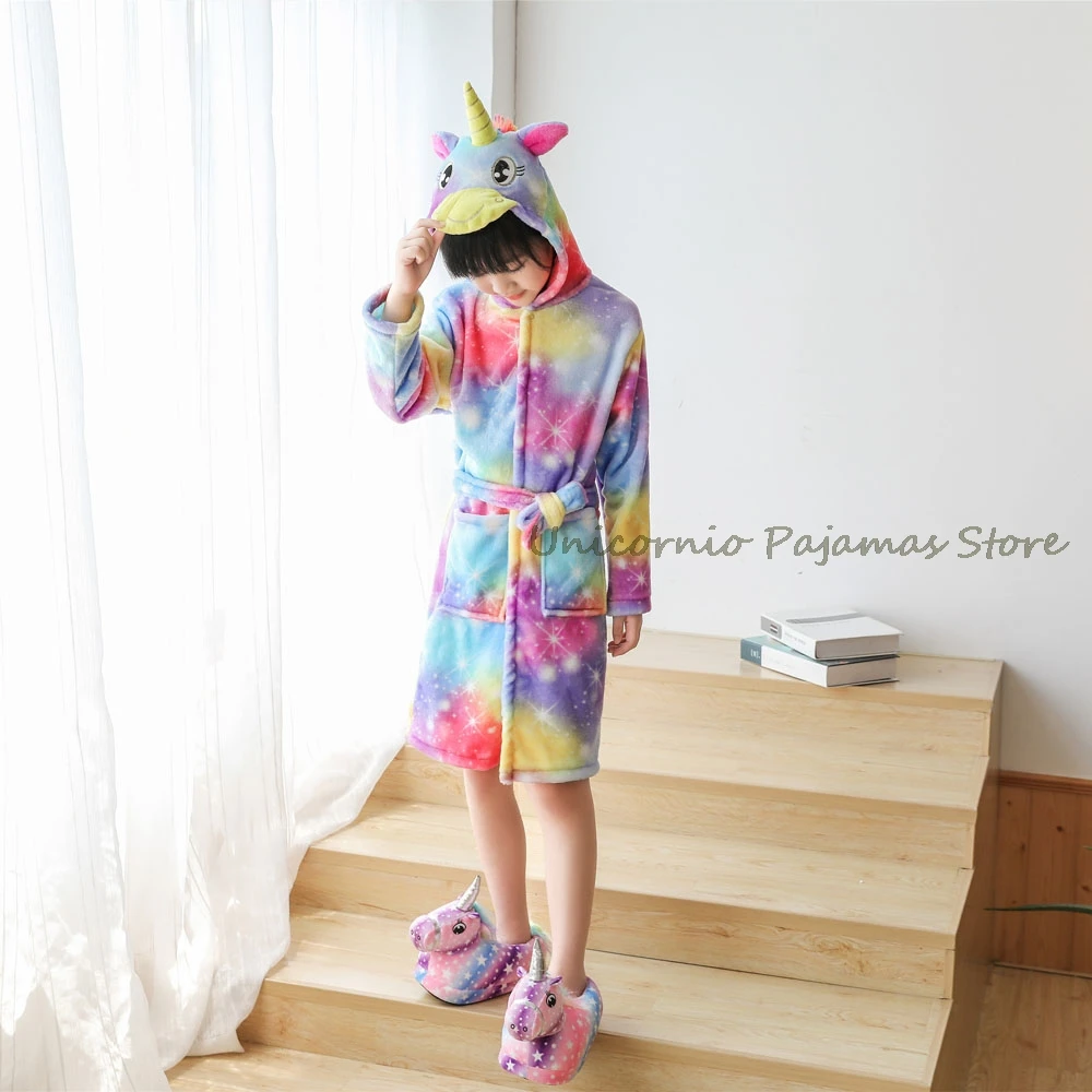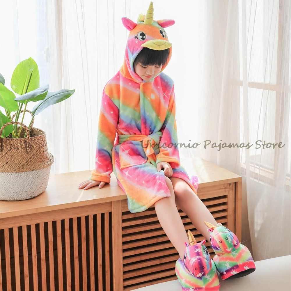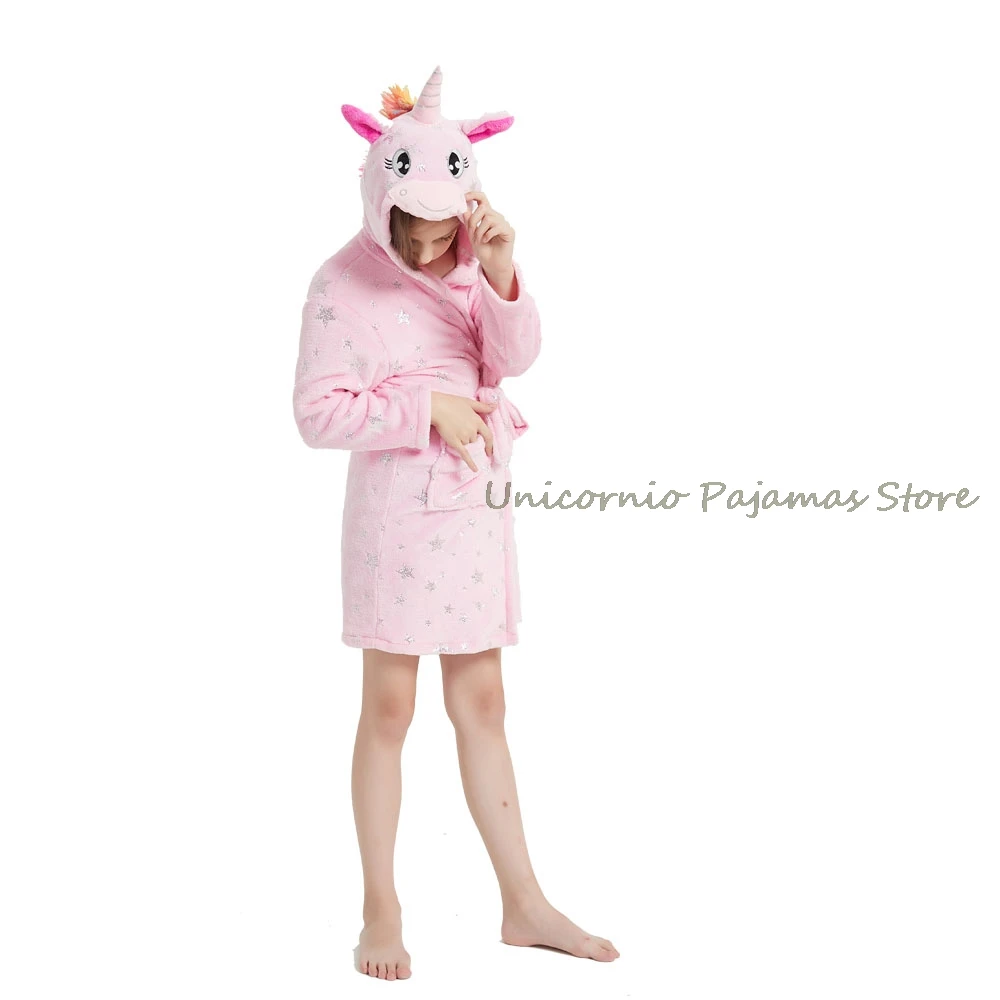 Кигуруми с капюшоном в виде единорога для мальчиков и девочек, банные халаты в стиле аниме для собак, детские пижамы, пляжное полотенце в виде единорога, банные халаты