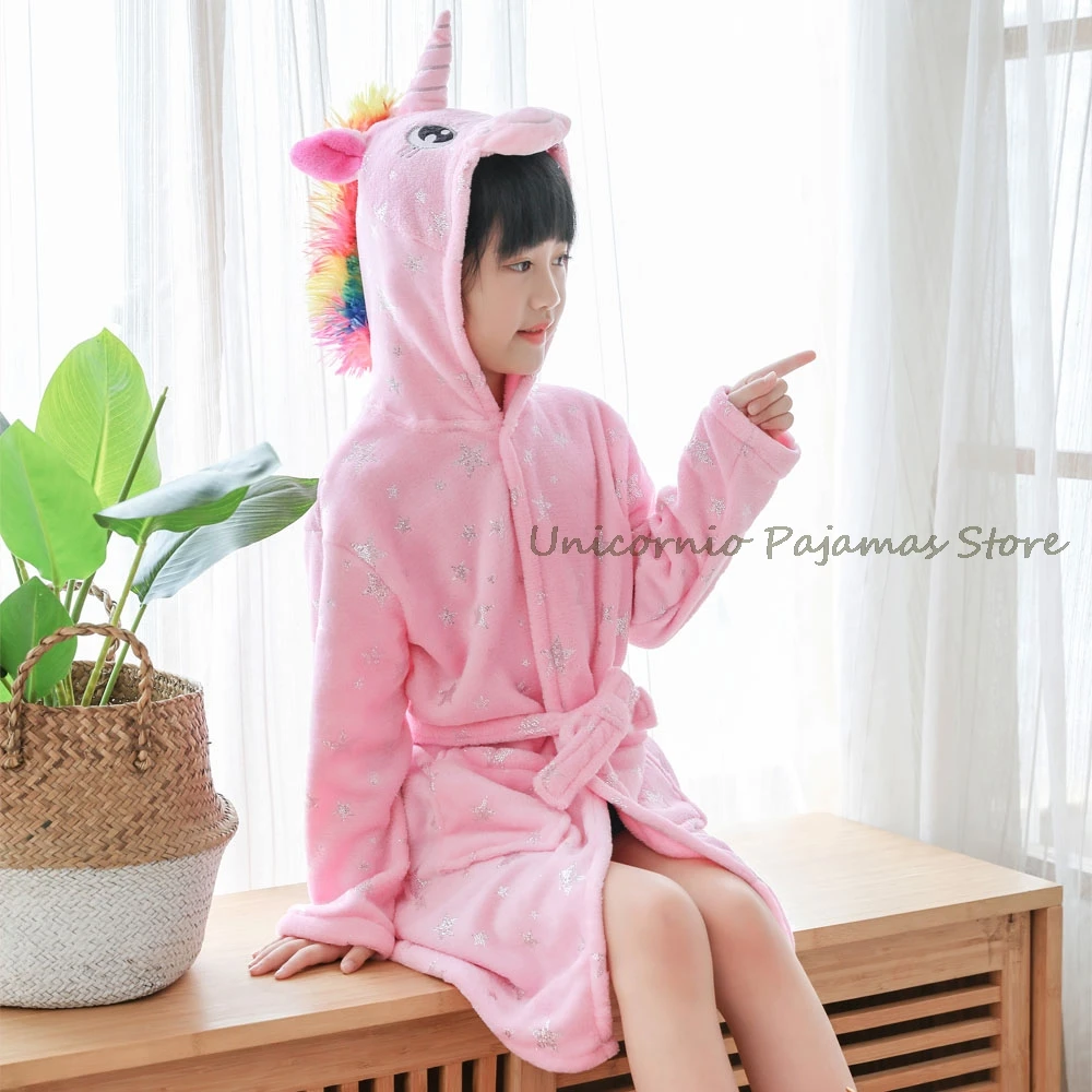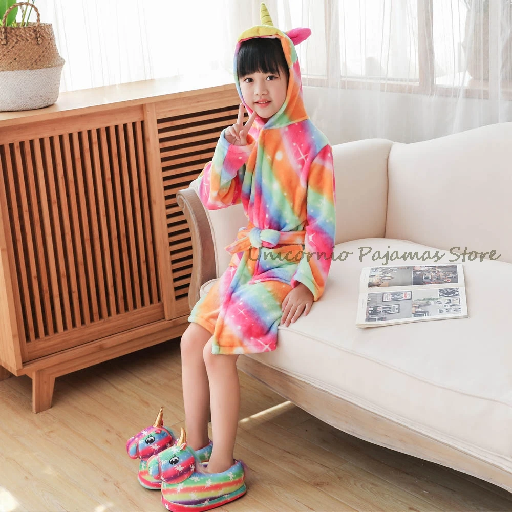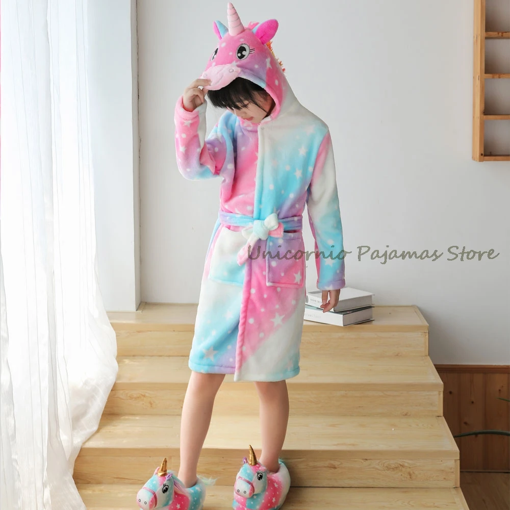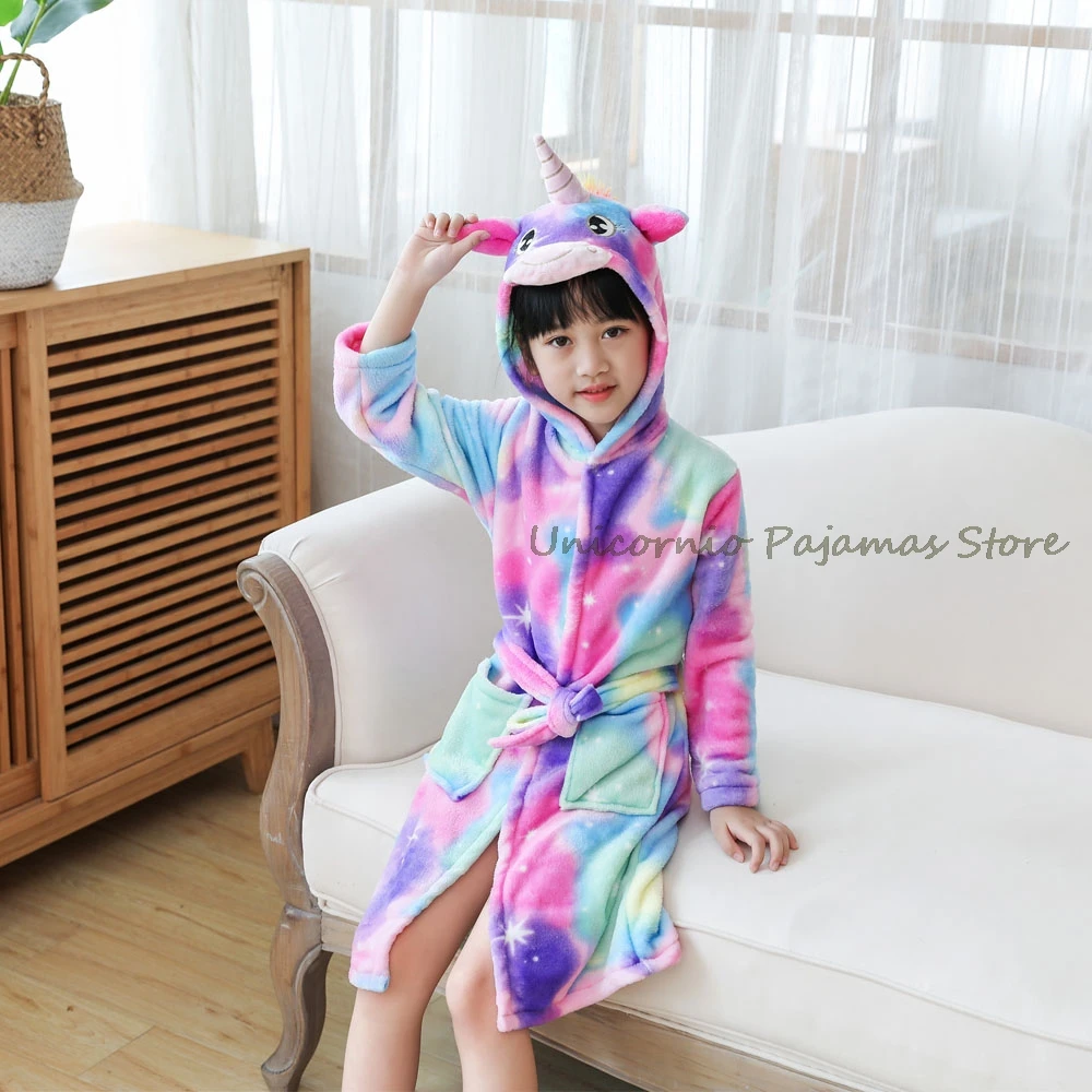 Кигуруми с капюшоном в виде единорога для мальчиков и девочек, банные халаты в стиле аниме для собак, детские пижамы, пляжное полотенце в виде единорога, банные халаты