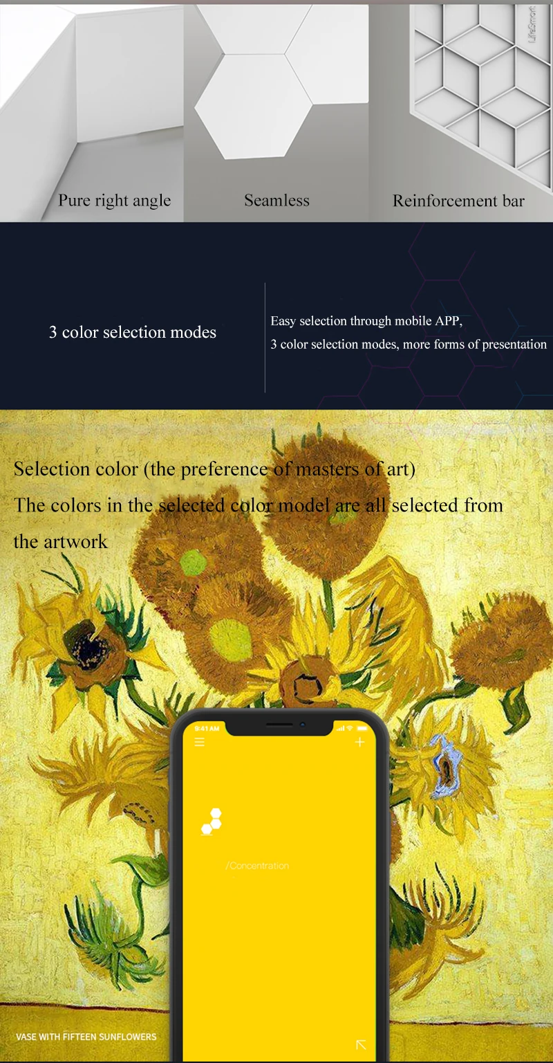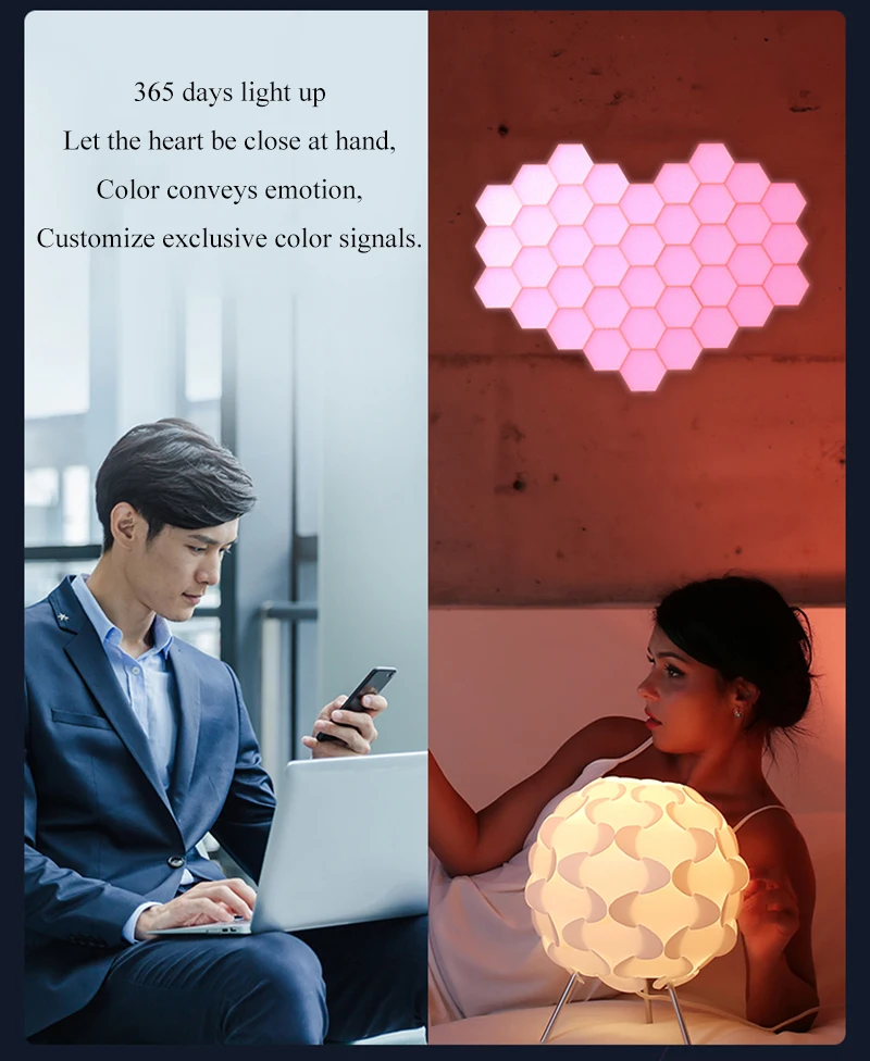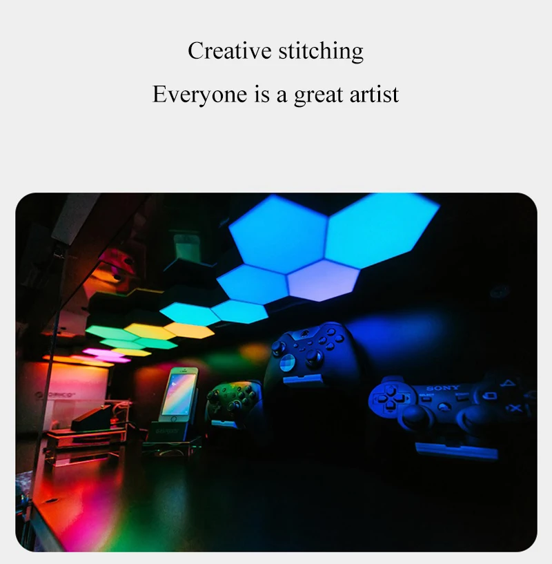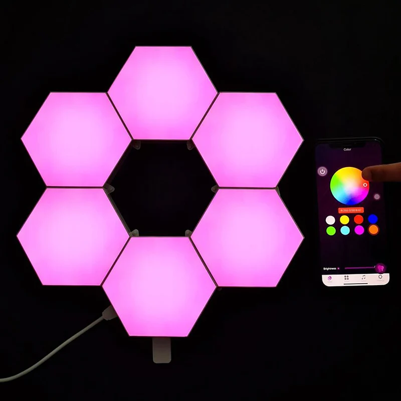 Приложение управления светодиодный Светодиодный шестиугольный светСветодиодный светильник DIY, в том числе 6 панелей-светильник; Удовольствие от DIY: до 12 панелей могут быть соединены вместе, чтобы создать свои собственные формы, показывает великолепные эффекты и создает романтическую атмосферу.16 миллионов цветов, выберите или Настройте цвета на мобильном приложении; 30 режимов изменения цвета, регулировка яркости, регулировка скорости изменения цвета, танцы на красном, зеленом и синем цветах с мобильной музыкой, танцуйте с выбранным цветом при записи музыки или голоса.Подключение по Bluetooth. Легко использовать и наслаждаться. Используйте usb-разъем и небольшие треугольные соединительные части, чтобы комбинировать светильник s и спроектировать ваш светильник. Обеспечивает питание, жизнь и множество других сцен, радует и делает вашу жизнь яркой.Размеры каждой панели: 4,1x3,5x1,2 в (10,3x9x3 см).Наклейте в любом месте на стену или стекло рядом с гнездом с помощью прозрачного нано-Резинового Клея. Не требуется подставка, напрямую контролируется через приложение на смартфоне; Обеспечивает питание, жизнь и множество других сцен с различным опытом.