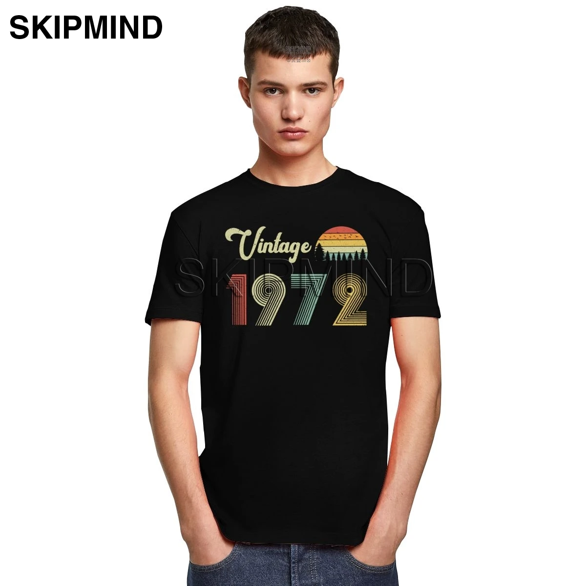 Мужская футболка из чистого хлопка, винтажная классическая ретро-футболка с коротким рукавом, для 48-летнего дня рождения, 1972