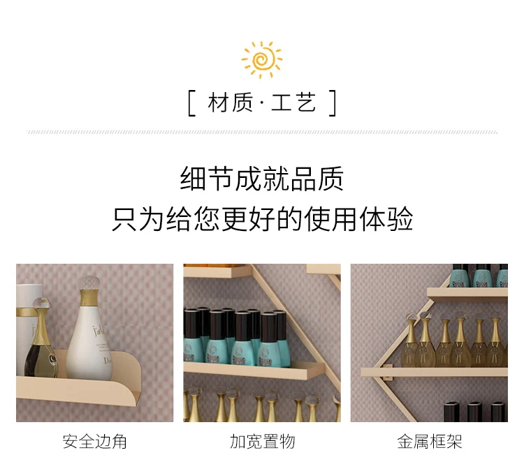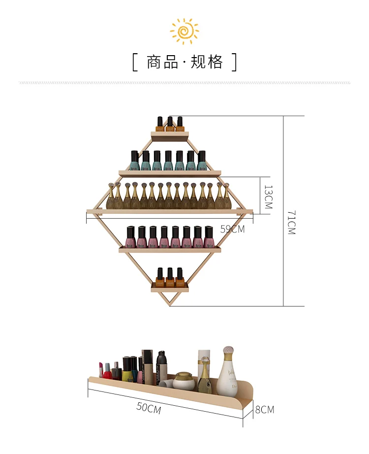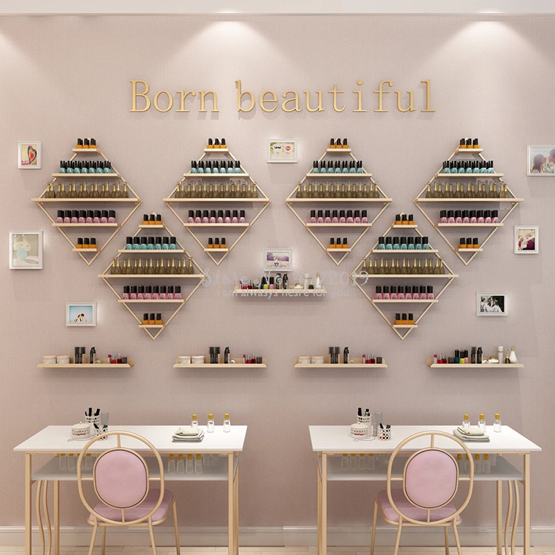Стеллаж для ногтей в форме алмаза, скандинавский Золотой Комплект полок для лака, витрина для маникюрного магазина, Настенная витрина для полка для косметики лака для ногтей