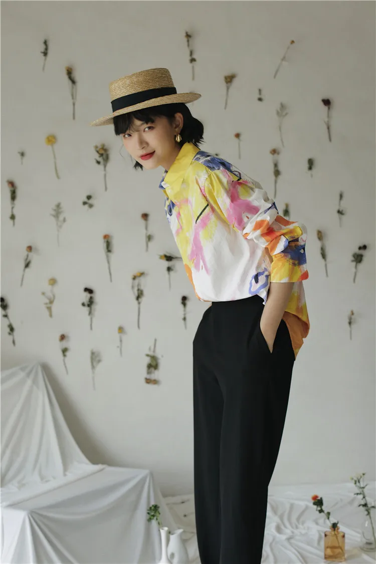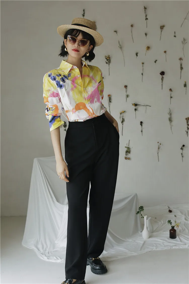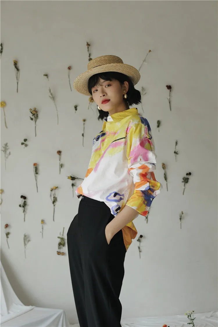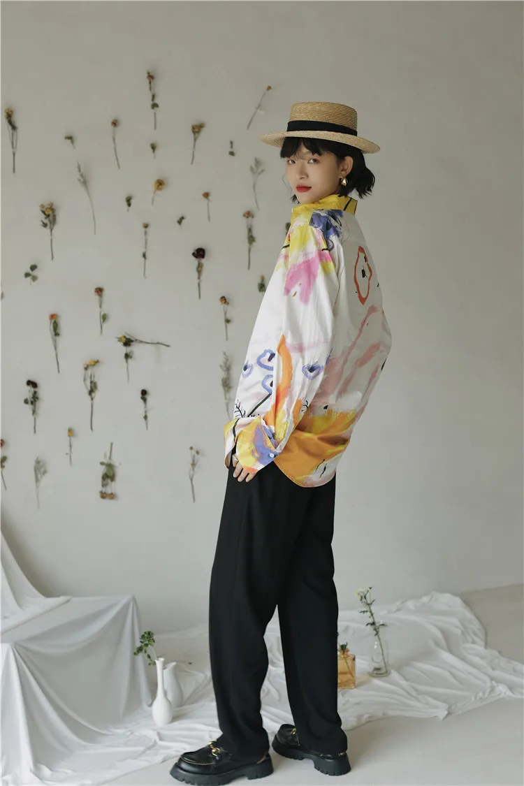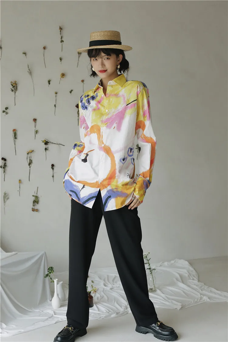 Дизайнерская Осенняя женская блузка CHEERART 2020, рубашка с длинным рукавом и воротником на пуговицах, белая хлопковая модная блузка с большим принтом, одежда