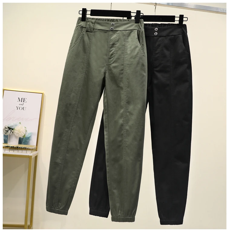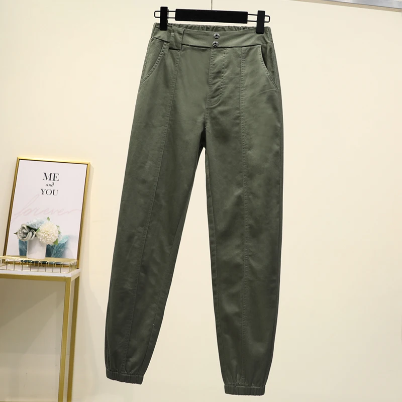 Брюки-карго женские с завышенной талией, повседневные свободные штаны из искусственной ткани, до щиколотки, с эластичным поясом, болотные Зеленые Черные