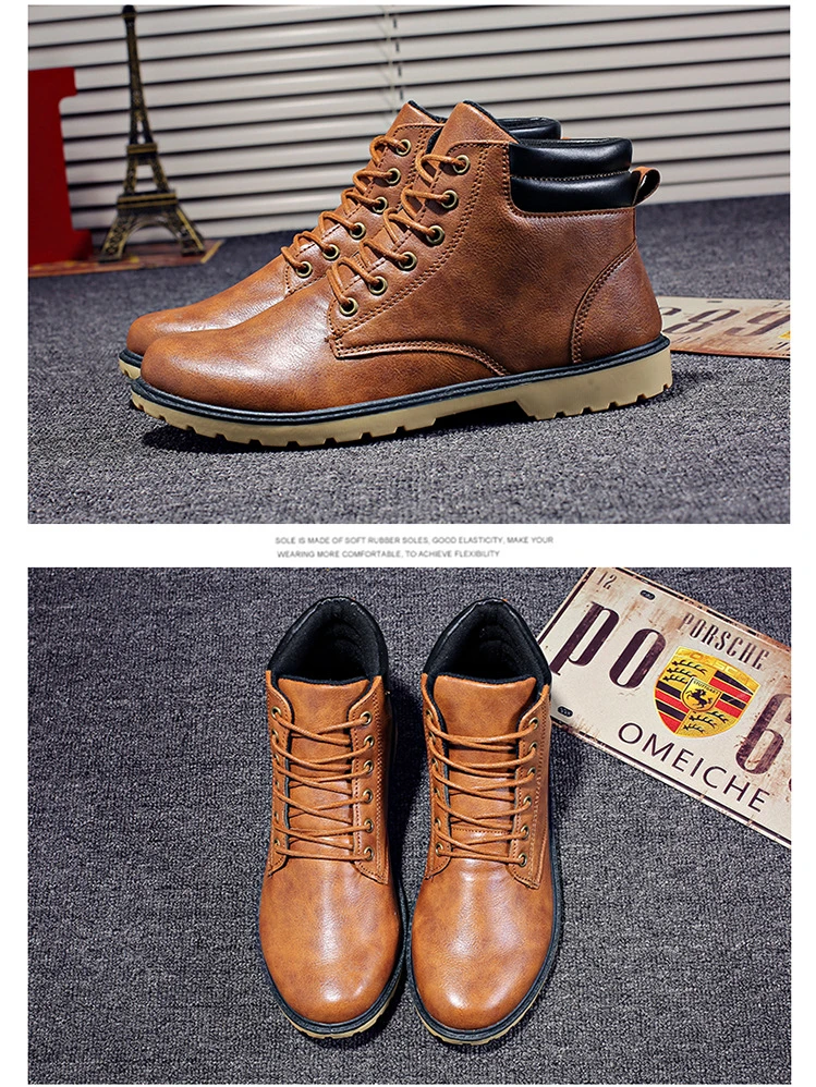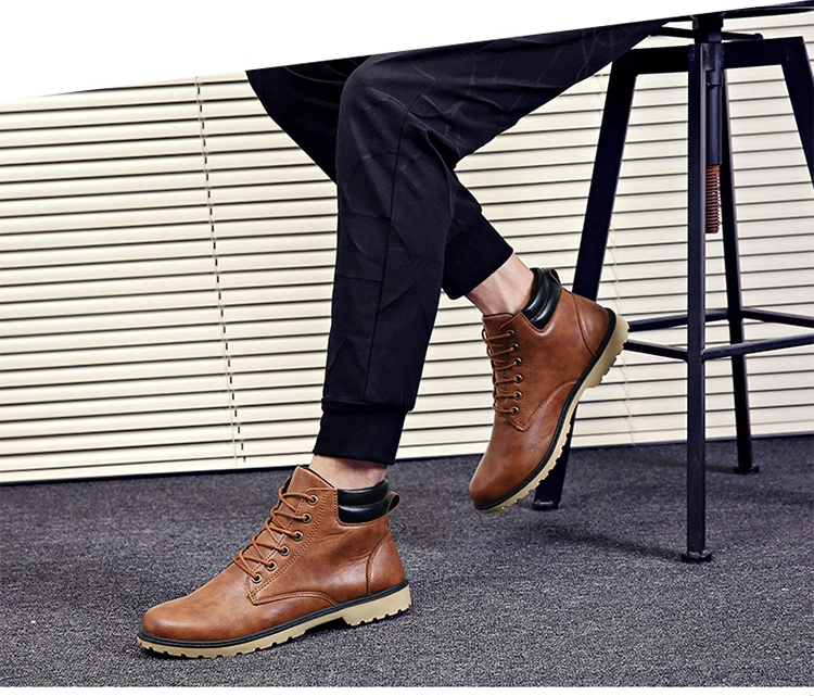 Классические мужские ботинки 2021, зимние дышащие и удобные ботинки-мартинсы, повседневные рабочие водонепроницаемые ботинки с высоким берцем из искусственной кожи