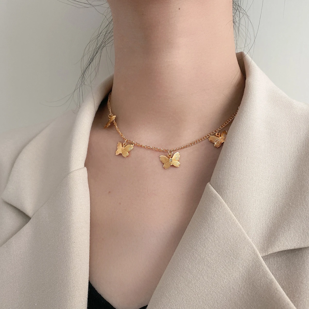 Ожерелье-чокер женское золотистоесеребристое, с бабочкой