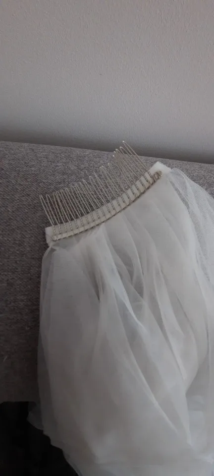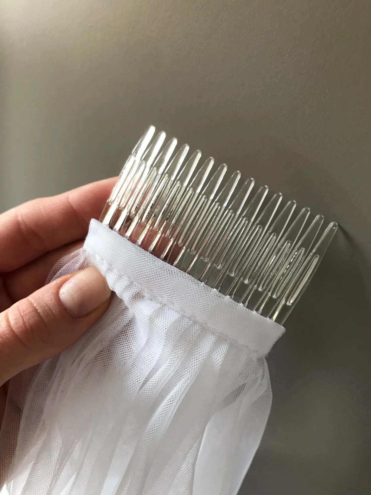 Вуаль довольно классная. Единственным недостатком является пластиковая расческа. Он очень прилипает к волосам, его трудно вытянуть, не повреждая прическу. Вы можете, вероятно, попробовать заменить его на металл, более деликатный.