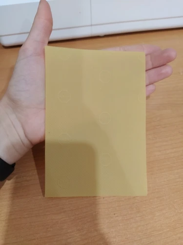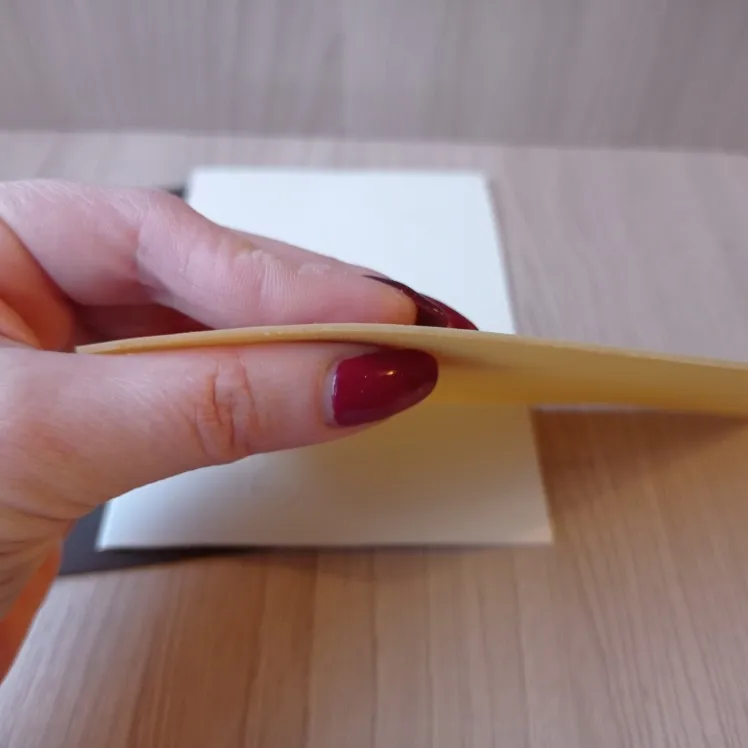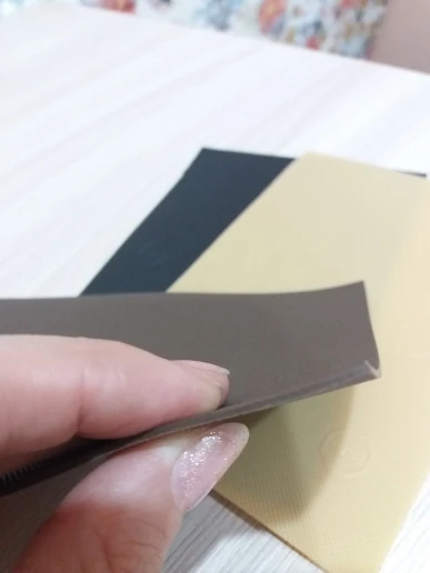 Ожидания не совпали, но описание все-таки точное. Два малюхоньких кусочка, тонкие, но это было заявлено 1мм. Планировала попробовать на подошва для кукол, но из одного кусочка вряд ли две пары получится на ножку 5см. Узкие слишком. Для сравнения на листе А4. Белый потолще вроде и не просвечивает, а бежевый прозрачный. Теперь и не знаю, как применить. До Красноярска шло долго, но праздники и почта России.