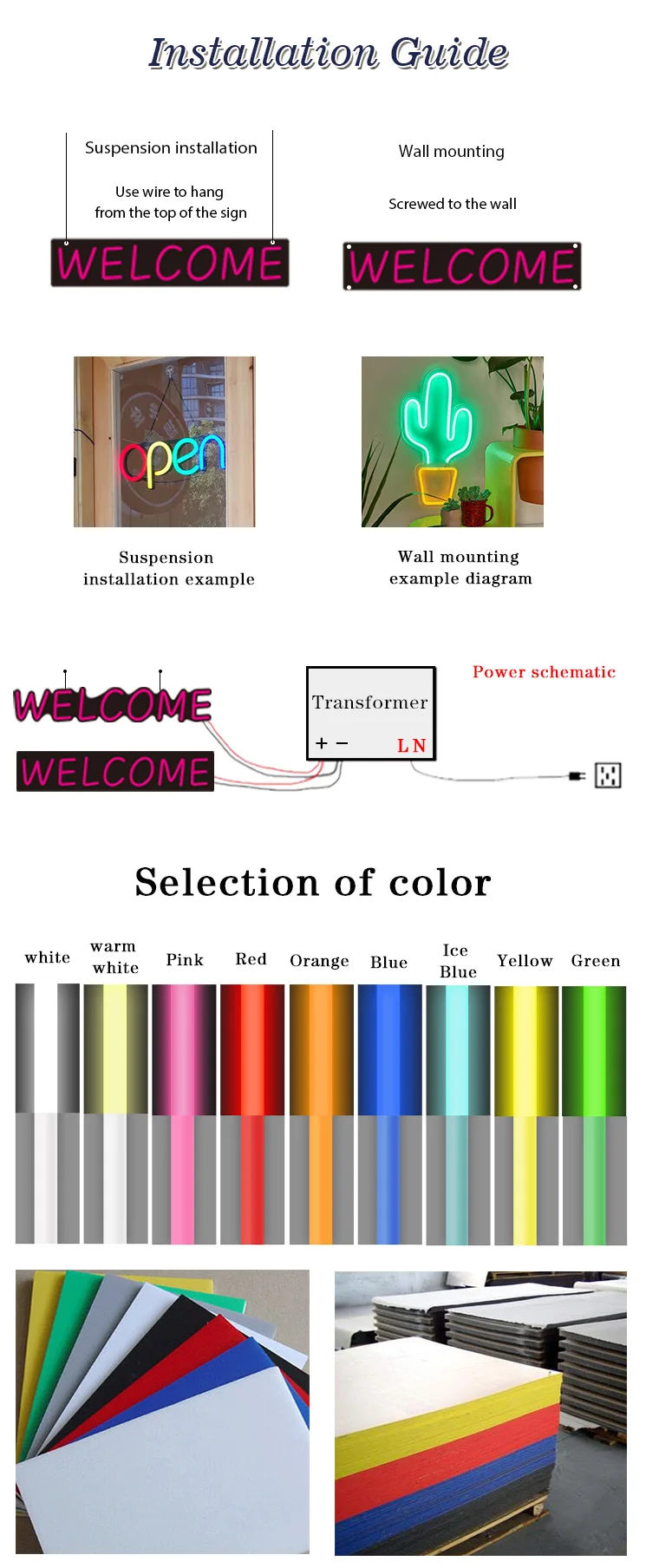 Наша светодиодная неоновая вывеска сделана из лучшего качества led neon flex, поэтому мы можем обещать, что наружная гарантия составляет 6 месяцев, гарантия в помещении составляет 1 год. В течение гарантийного срока, если возникнут какие-либо проблемы с качеством, мы отремонтируем или даже заменим для вас бесплатно.
